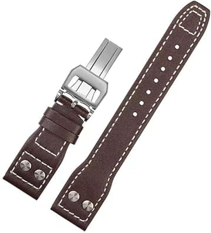 21mm Coffee Leather Watch Band Strap Compatible with IWC Big Pilot Watch-21mm IWC Leather Watch Strap