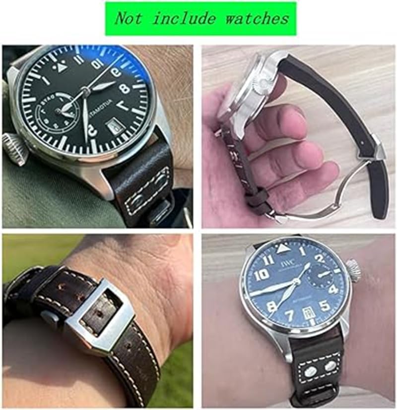Specification: Band material: Leather; Fit wrists size from 5 to 8 inches. Suitable for IWC Big Pilot. Package: 1 x CYKLDS Leather watch band with Buckle; 1 x Spring bar removal tool.
