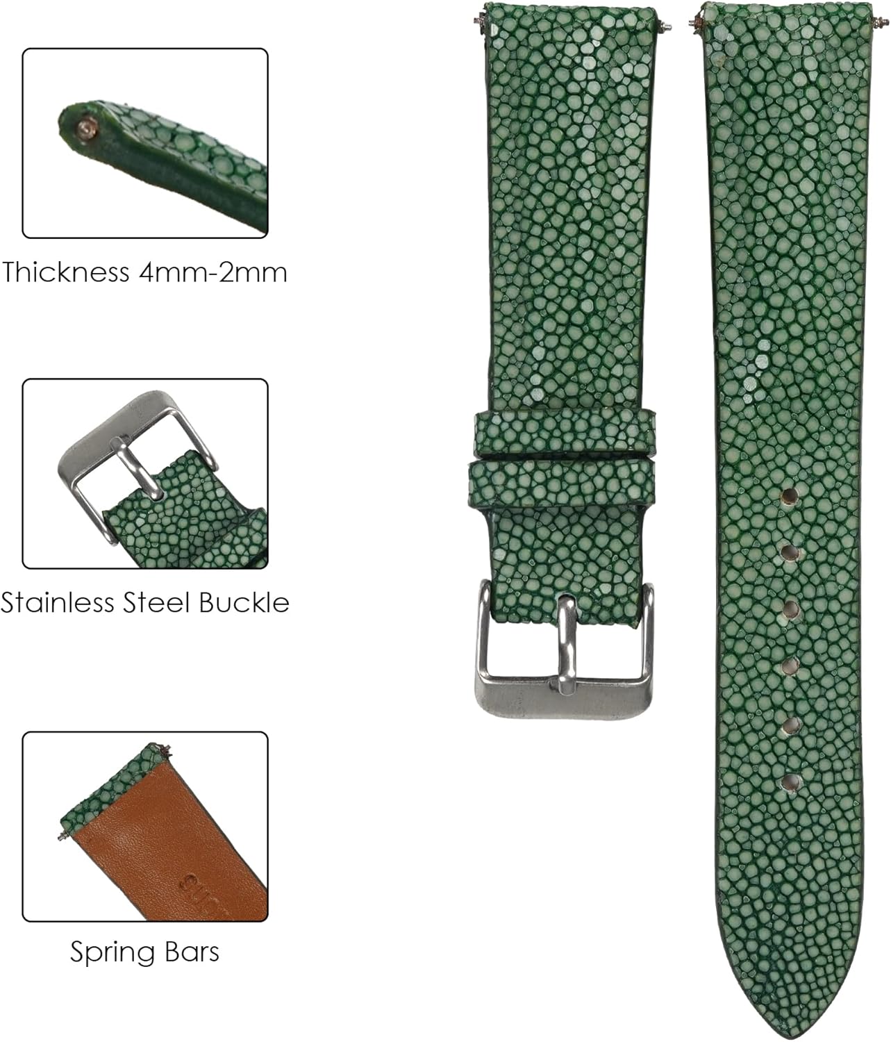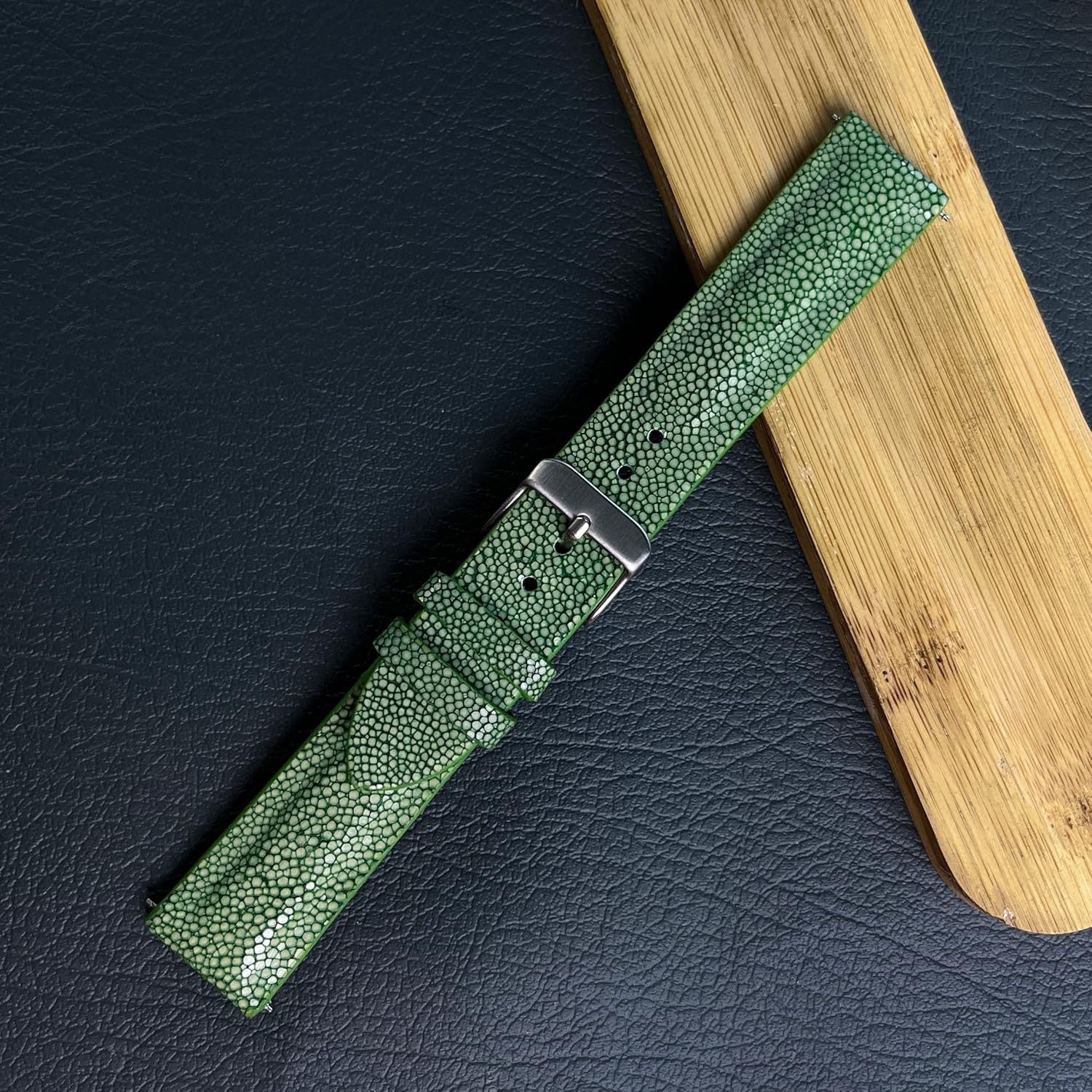 2 reviews for 22mm Green Handmade Stingray Leather Watch Band Men Premium Luxury Replacement Buckle Strap by Vietnamese DH-68-22MM