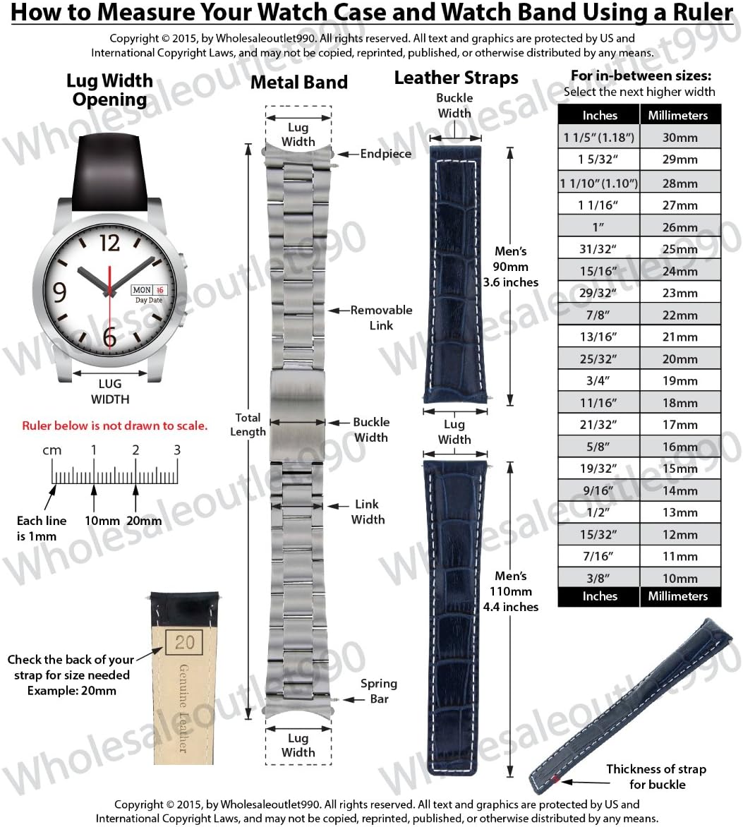 This strap is made of genuine premium Italian leather, high quality leather with red thread stitching and thick 6mm padding and it comes with waterproof nubuck genuine leather lining on the back side for sweat resistance for long lasting and durability of the strap it and comes with comfort, classy and expensive look and make it look like original straps.. It will fit up to an 8-8 1/2 inch wrist.