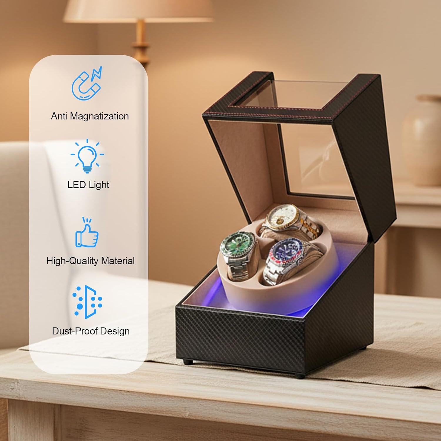 The Anyasun Watch Winder is a premium storage and maintenance solution designed for automatic watch collectors who value precision, quiet operation, and elegant design. Built to accommodate up to three automatic watches simultaneously, this winder ensures your timepieces remain fully wound and ready to wear at all times. Ideal for both men and women, it combines advanced functionality with a sleek, modern aesthetic that complements any bedroom or dressing area. Whether you own a single luxury automatic or a small collection, this winder protects your investment by preventing lubricants from settling and maintaining optimal movement performance. With its intuitive LED display and multiple rotation settings, it offers customizable care tailored to your watches’ specific requirements.