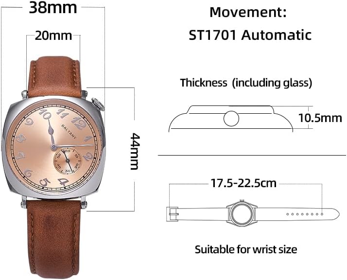 The Baltany Dress Watch for Men blends classic vintage styling with reliable mechanical performance, offering a refined timepiece tailored for men who appreciate heritage design and functional elegance. Drawing direct inspiration from early 20th-century dress watches, this model—designated 1921 S4046—captures the essence of a bygone era while incorporating materials and engineering suited for modern daily wear. Its rich brown leather strap and domed sapphire crystal create a cohesive, warm aesthetic that transitions seamlessly from boardroom meetings to formal dinners. Unlike quartz alternatives, this watch is powered by an automatic mechanical movement, meaning it keeps time through the natural motion of your wrist—no batteries required. Ideal for collectors, professionals, or anyone seeking a sophisticated accessory with historical character, the Baltany 1921 S4046 delivers enduring style without compromising on practicality.