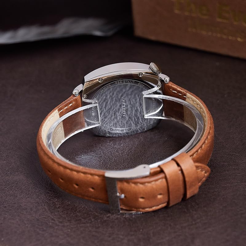 - Brown Leather Strap – Made from genuine leather, the strap offers a soft, comfortable fit that molds to your wrist over time. Its rich brown hue complements a wide range of outfits, from navy suits to earth-toned casual wear, and develops a natural patina with use, enhancing its vintage appeal.