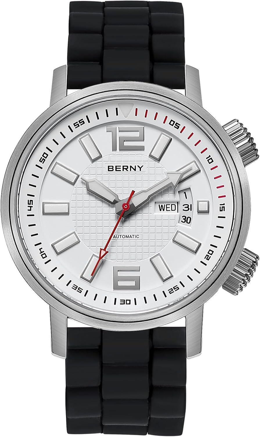 The BERNY Automatic Mechanical Dive Watch stands out for its blend of advanced engineering, rugged durability, and timeless design. Unlike quartz watches, its self-winding movement offers a connection to traditional horology while delivering modern performance. With premium materials like sapphire glass and a silicone strap, it balances comfort and resilience for active lifestyles. Whether you’re a diver, adventurer, or watch collector, this timepiece offers unmatched reliability and style—all without the need for a battery.