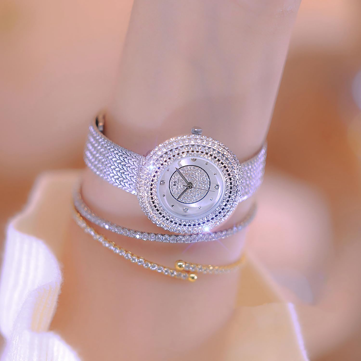 BESTKANG Luxury Womens Watch Round Bling Bling Crystal