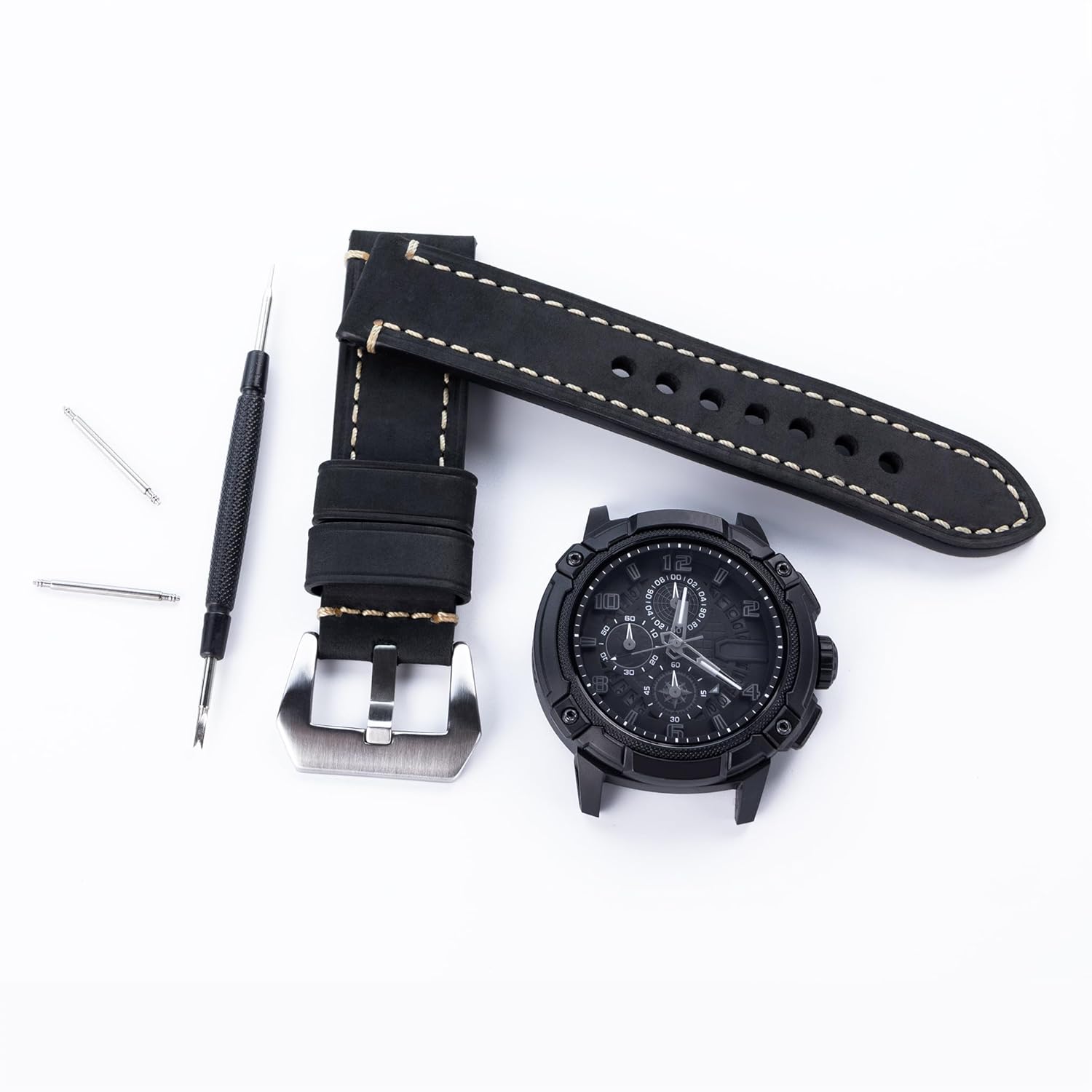 - Included Spring Bars and Tool – Comes with a pair of high-quality spring bars and a removal tool, allowing for easy installation and replacement without professional assistance. The tool works with a small flathead screwdriver or pocket knife for added convenience.
