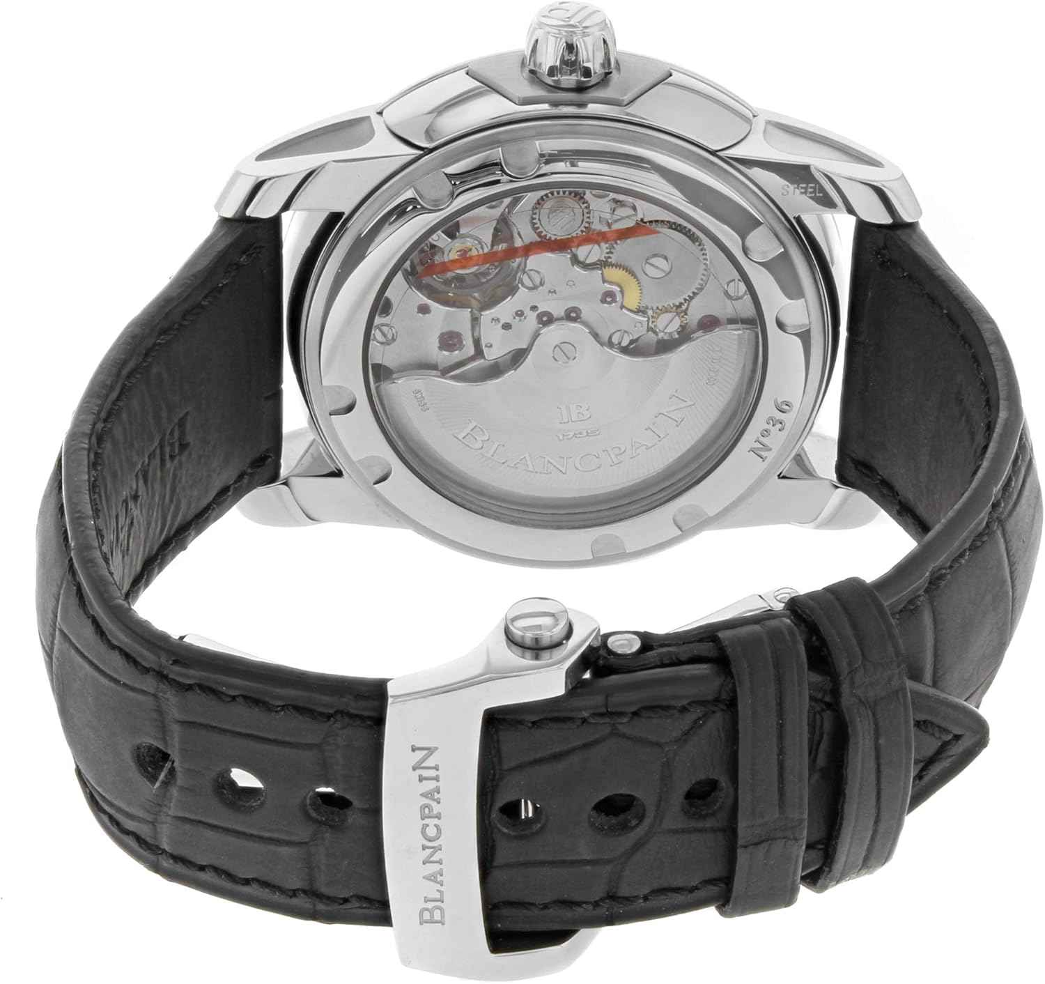 • Calibre #13R5 Automatic Movement: This 36-jewel self-winding mechanical movement is entirely developed and manufactured by Blancpain, showcasing the brand’s commitment to horological craftsmanship. It features a visible power reserve indicator, allowing wearers to monitor remaining energy.