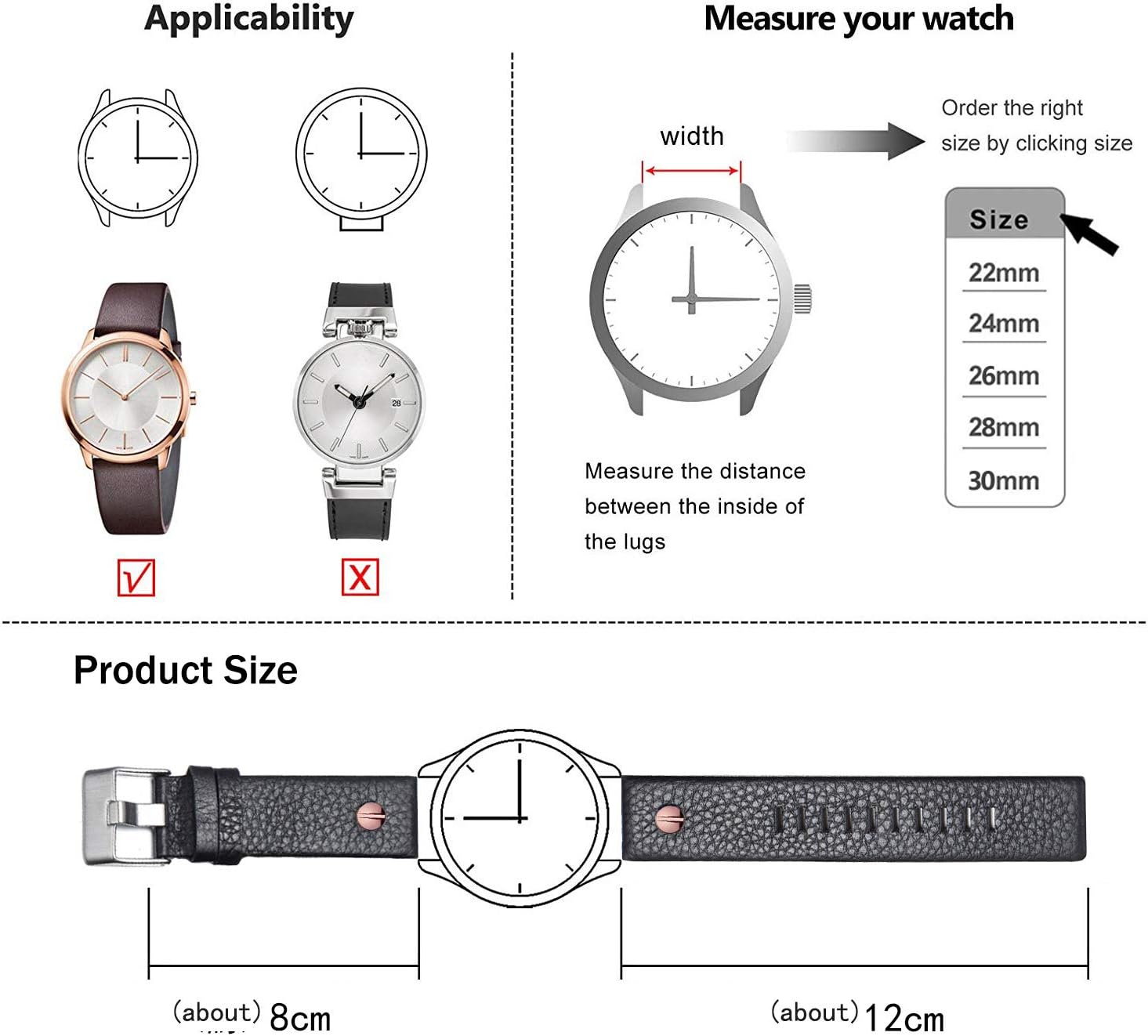 - Package Includes: 1 leather watch band, 1 spring bar tool, 3 stainless steel spring bars, 1 external packaging