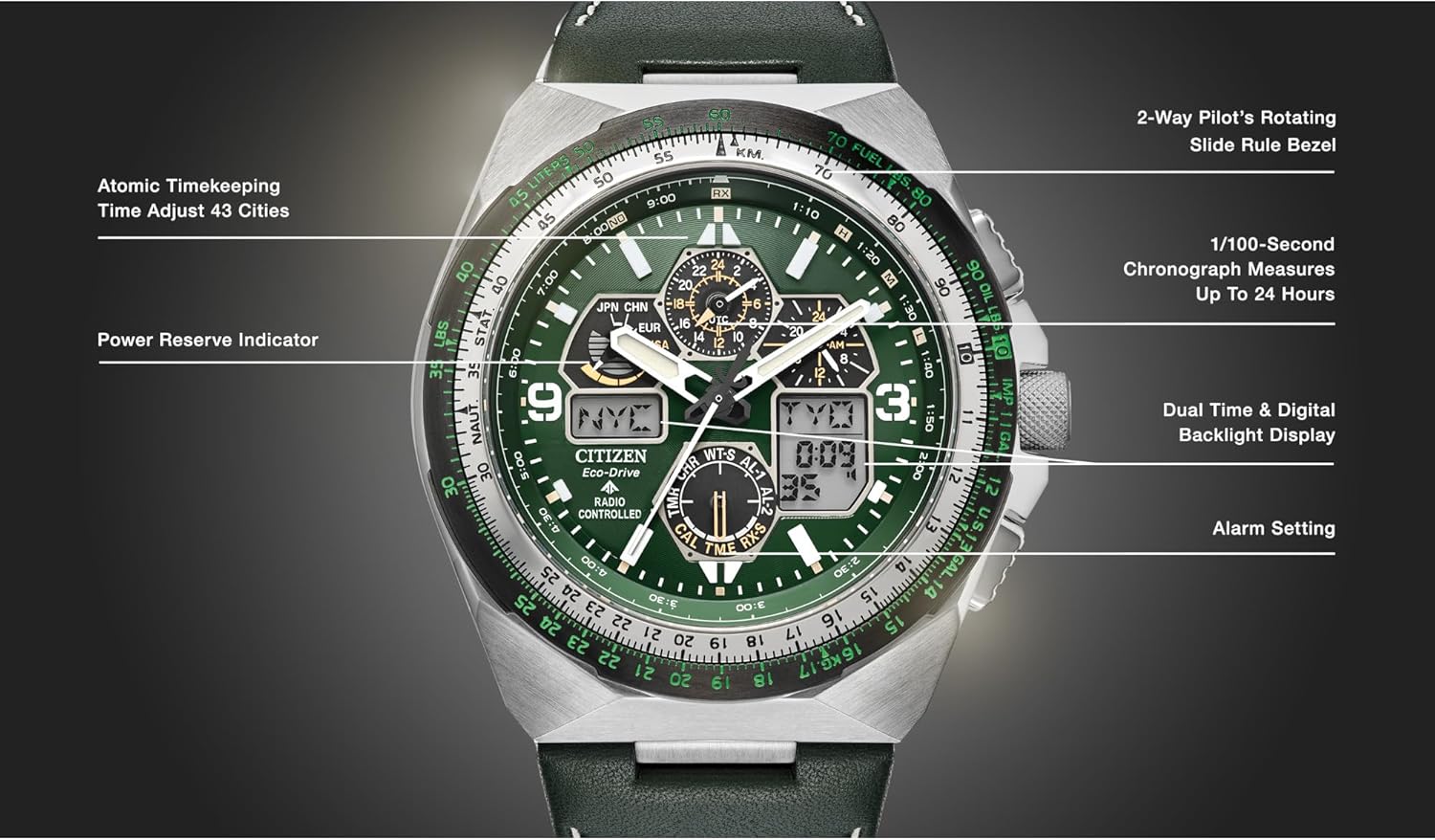 Be the first to review “Citizen Men’s Eco-Drive Promaster Skyhawk A-T Watch, Green Dial, Green Leather Strap, Atomic Timekeeping (Model: JY8147-01X)”