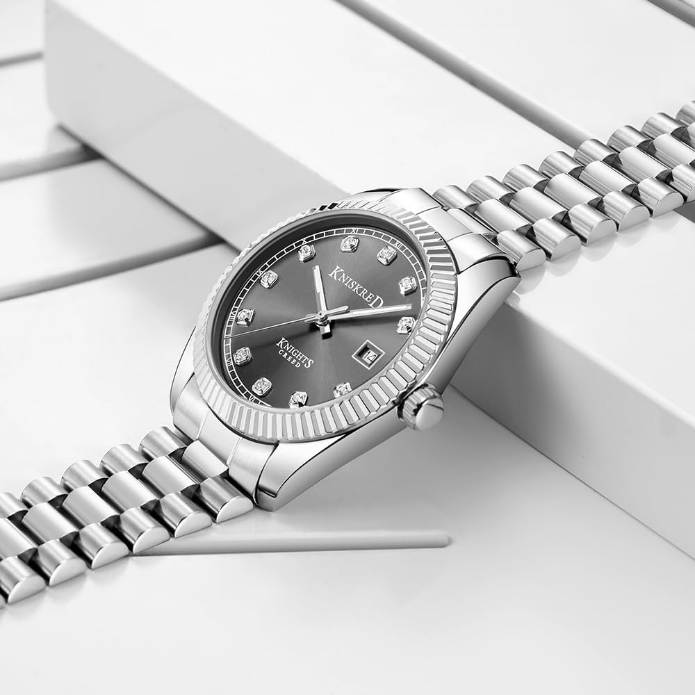 - Solid Stainless Steel Band and Case: Crafted from high-grade stainless steel, both the case and band resist corrosion, scratches, and daily wear. The material maintains its luster over time and offers a substantial yet comfortable feel, contributing to the watch’s professional and enduring aesthetic.
