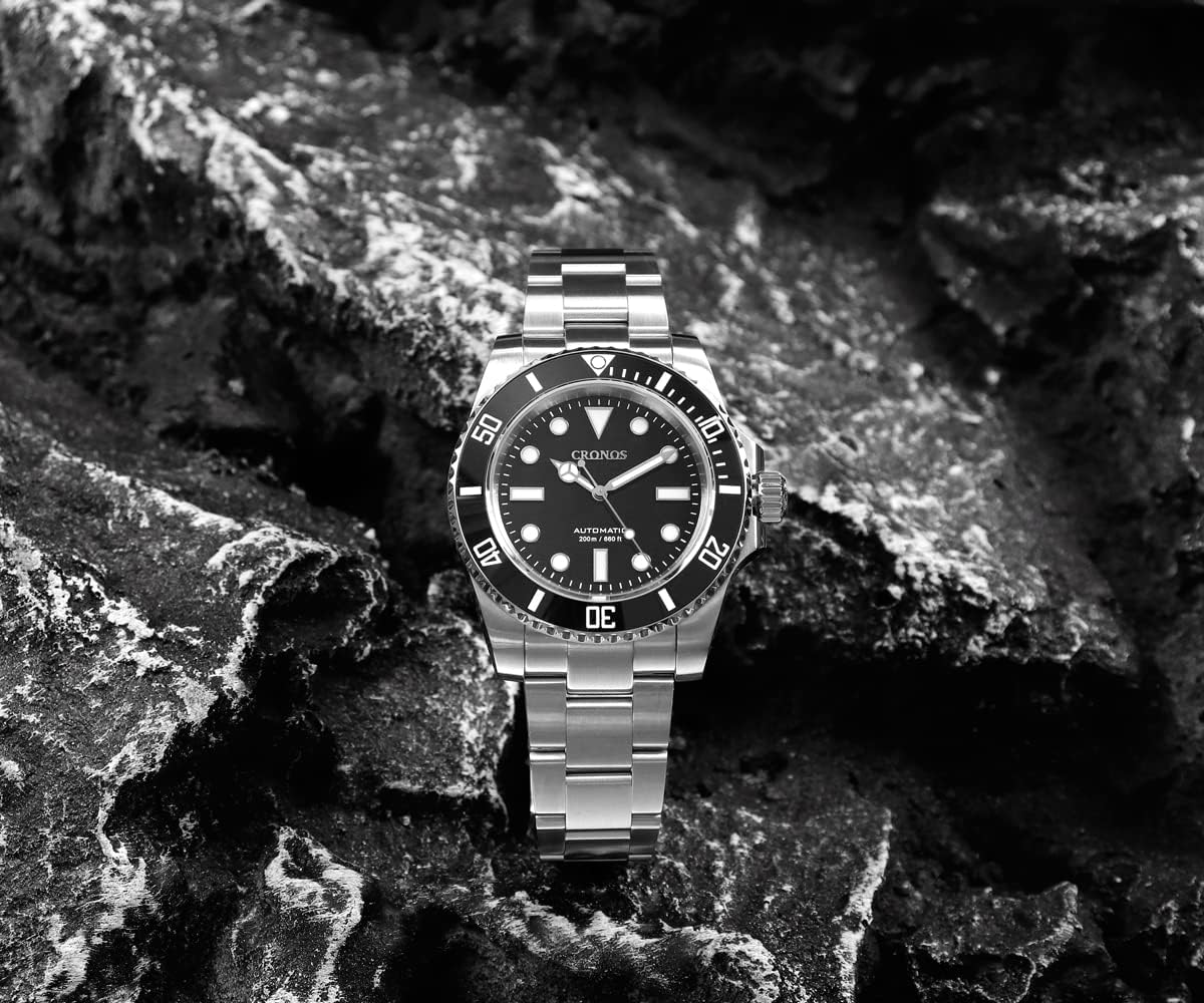 - 120-Click Unidirectional Ceramic Bezel: Features a black enamel dial and a durable ceramic insert that resists fading and scratching, allowing precise timing during dives or timed activities.