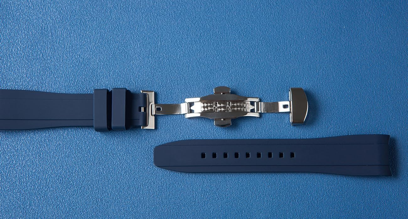 Strapseeker Curved End Soft Silicone Sports Rubber Watch Bands- Compatible with Omega Swatch Moonwatch, Omega Speedmaster, Rolex Submariner, Seiko SKX Dive Watches- 20mm,22mm – Curve Replacement Watch Straps for Men & Women5*$39.99Green strap, normal buckle.Available in multiple colours, some with buckles, some with claspsI wear a Citizen Divers watch which is super titanium. The strap is also super titanium. The combination is very light. However, I do find that the metal strap can catch on the hairs on my arm, which can be quite uncomfortable. I like wearing the watch so wanted to try a different strap.The Strapseeker Curved End soft silicone comes in a resealable packet that suggests the contents are not any old “cheapie” strap… and it most definitively is not !The packet contains a 2-piece strap, another resealable bag with a double-ended installation tool and 2 sets of heavy duty springs, together with a registerable warranty.Out of the packet the strap oozes quality. The silicone is soft and supple to the touch without feeling thin or weak. There is no noticeable odour. The silicone itself is not sticky and doesn’t serve as a dust or pet hair magnet. Everything feels high quality.I needed the adjustment tool to remove the old strap. I only needed to use my thumbnails to fit the new one. I reused my existing springs and now have a couple of spare sets for emergencies. I suggest a couple of dry runs with the strap pieces so as to know the proper placing when fitted. The underside of the strap Connection butts up to the bottom edge of the watch case. The curved top edge butts up against the top edge of the case, closing any gaps and giving a nice , close finish.On the wrist the strap buckle works easily and the stretchiness of the strap gives an opportunity to select a tighter or looser fit, as per your preference. The buckle lays flat and the strap has a fixed and a moving silicone keeper to hold the end of the strap close and avoid flapping. My minor gripe here is that the moving keeper was tighter to the strap so that it held the end of the strap closer and minimised any changes of catching it on something whilst being worn… not necessarily a biggie… more a personal preference.Once fitted, the Strapseeker completely changes the look of the watch and how it feels when being worn… both for the better in my opinion ! It took me around 10 mins to remove the oId strap, clean the watch body where the oId strap sat, familiarise myself with positioning and then insert the springs and click the strap into place, ensuring cIose abuttment and a nice clean finish. The strap feels robust and my watch feels safely secured to my wrist.Highly recommended.