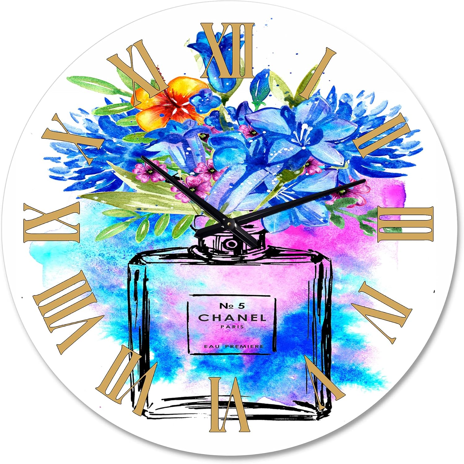 1 review for DesignQ French Country Wall Clock ‘Perfume Chanel Five V’ Floral & Botanical Large Wall Clock for Office Decor