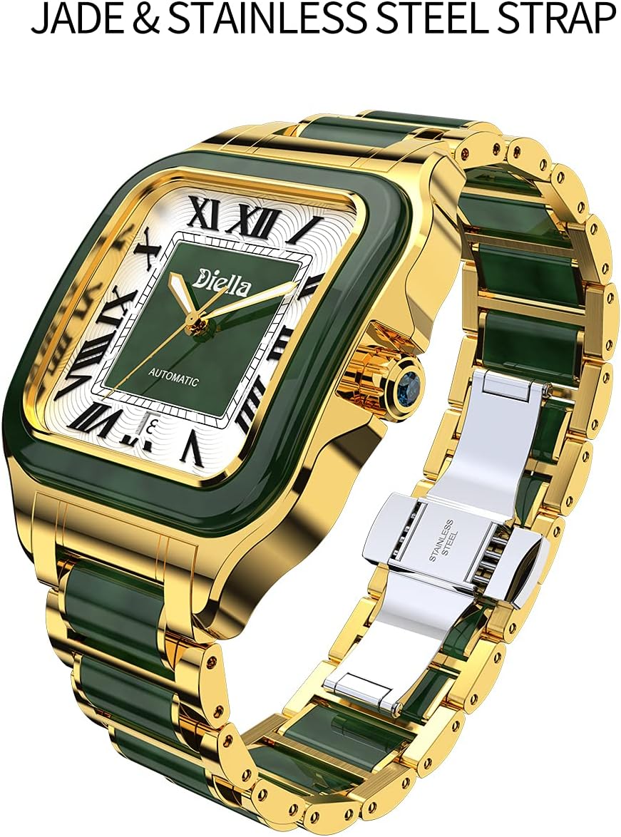Diella Watches for Men, Mens Watches Waterproof Date Luminous, Dial is Inlaid with Emerald Jade, Crown with Sapphire Automatic Watches for Men Highend Luxurious Gift