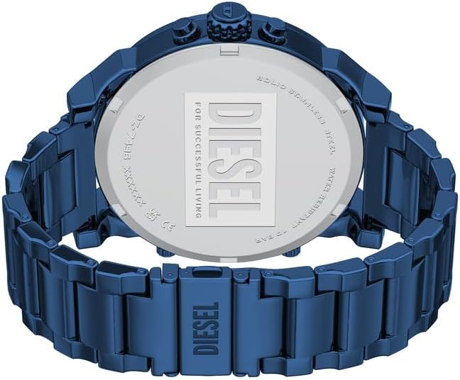 Please note that this watch requires one 12V battery, which is included with purchase. For warranty-related inquiries or service requests, customers may contact Diesel customer service directly. The manufacturer’s warranty is available upon request. Care should be taken to avoid prolonged exposure to water, extreme temperatures, or direct impact to preserve the finish and movement integrity. This timepiece is designed for fashion-forward wear and may not be suitable for high-impact sports or diving activities. To maintain its appearance and performance, store the watch in a dry place when not in use and avoid contact with harsh chemicals or abrasive surfaces.