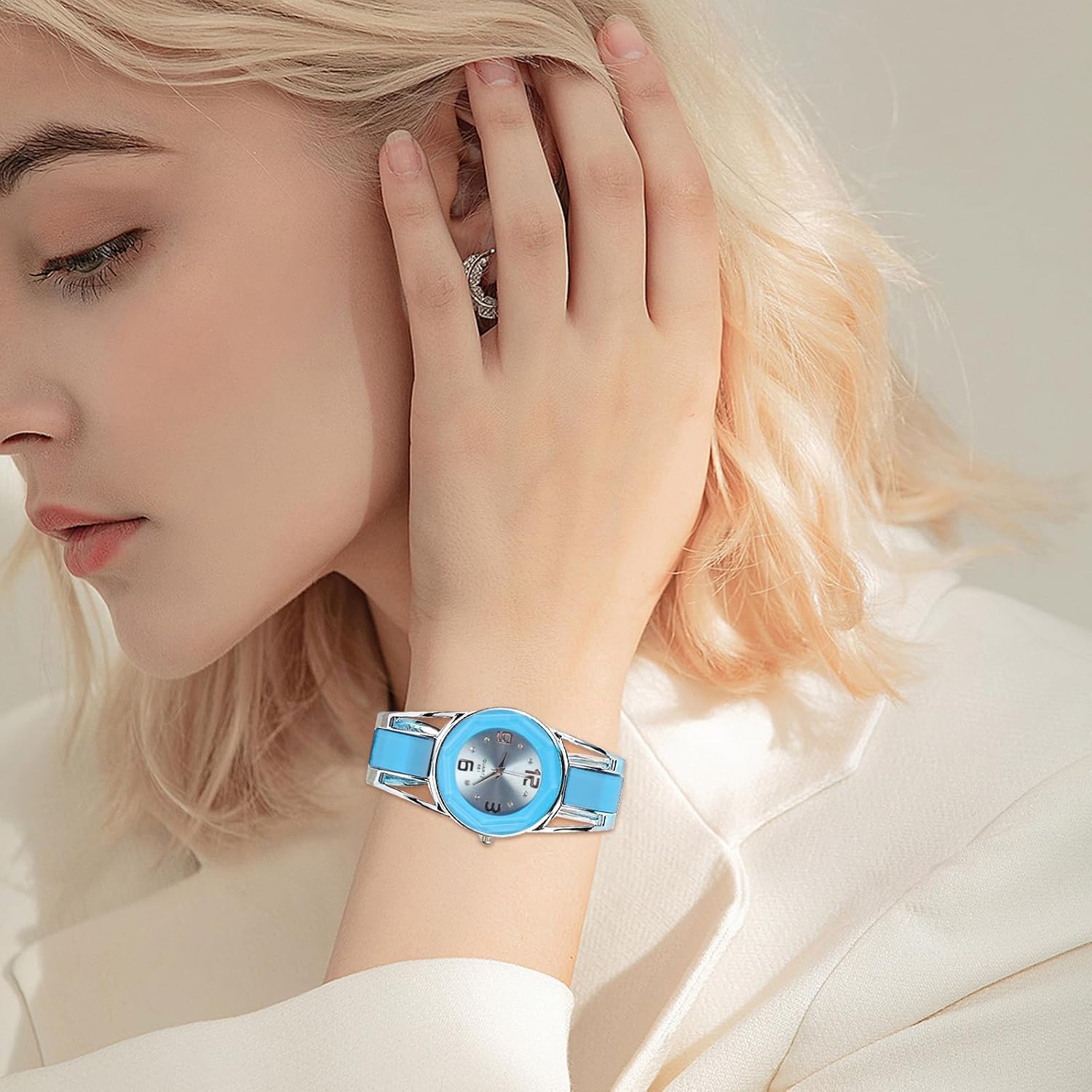 This bangle watch is perfect for women who appreciate accessories that transition smoothly between different parts of their day. Whether you’re heading to the office, meeting friends for brunch, or attending a dinner event, the watch’s understated elegance complements both casual and formal attire. The stainless steel construction ensures it withstands daily wear, while the rhinestone detailing adds just enough glamour to elevate a simple outfit. Its clasp-free design allows for easy on-and-off wear, making it convenient for those with busy routines or limited dexterity. The lightweight build—just 2.4 ounces—ensures comfort throughout the day without feeling bulky or restrictive. Additionally, the included gift box makes it a thoughtful present for loved ones, requiring no extra wrapping or packaging. With its balance of durability, style, and practicality, this watch suits women who want a reliable timepiece that also serves as a statement accessory.