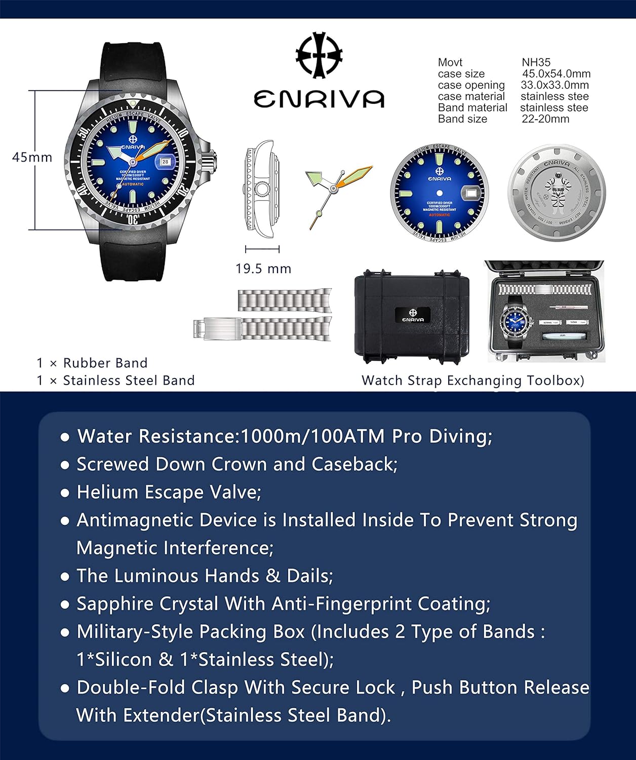 ENRIVA Men’s Automatic Pro Dive Mens Watch Aluminium Bezel