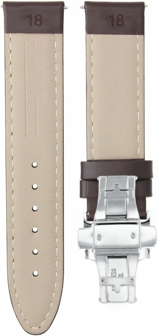 - Package Includes: 1 set (2 pieces) of real leather straps, 1 stainless steel deployment buckle, 2 spring bars