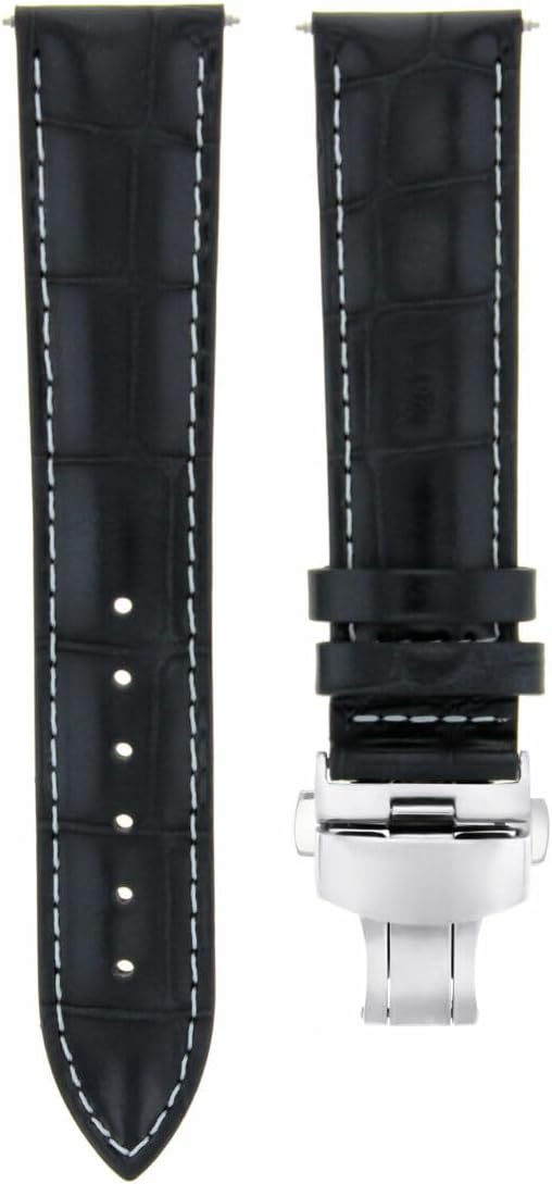 The item for sale is a brand new strap made of the finest Italian pattern genuine leather in Black color with white thread stitching and butterfly deployment clasp.