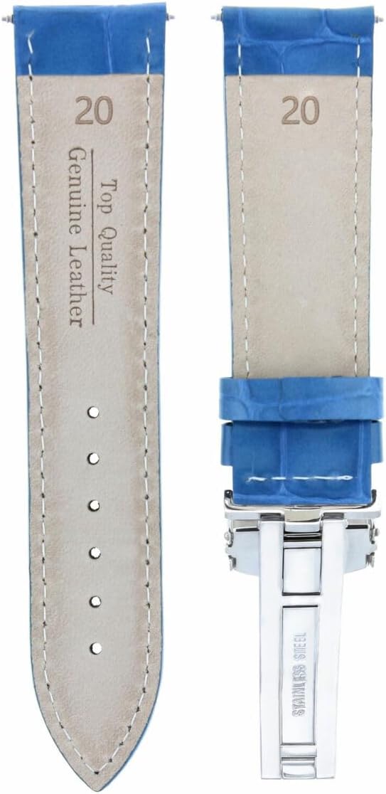 The item for sale is a brand new strap made of the finest Italian pattern leather with deployment clasp in Blue color. It is made for Maurice Lacroix watches which has 20mm lugs.
