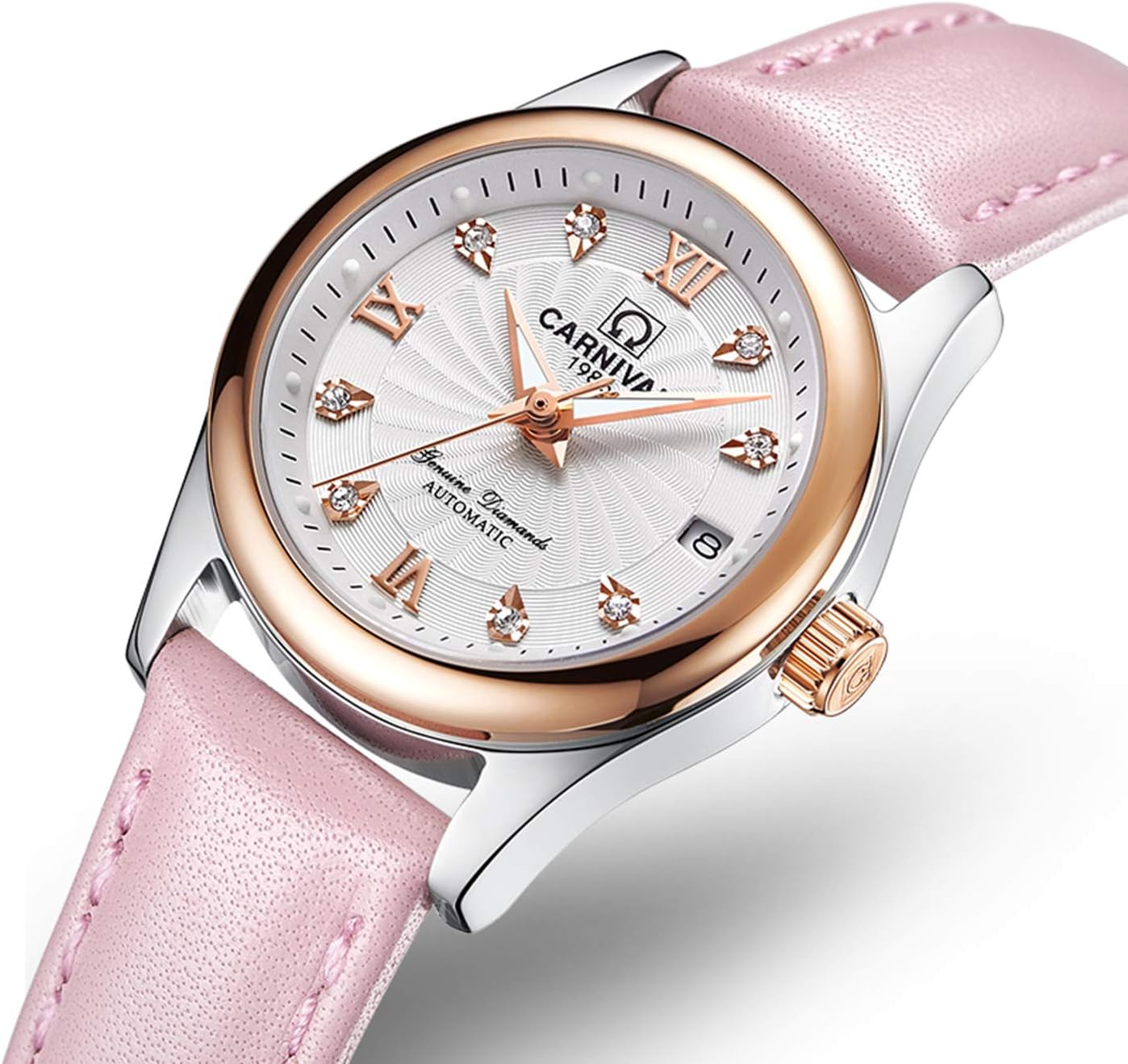 The FANMIS Luxury Women’s Automatic Mechanical Luminous Calendar Diamond Leather Waterproof Watch in Pink Rose Gold is a refined timepiece that blends timeless elegance with reliable functionality. Designed for the modern woman who values both aesthetics and practicality, this watch features a self-winding mechanical movement that harnesses the natural motion of the wrist to keep time—no batteries required. Its compact 26mm stainless steel case in a soft pink rose gold finish offers a delicate yet sophisticated presence on the wrist, making it ideal for everyday wear or special occasions. Whether paired with a matching stainless steel bracelet or a supple leather strap, this watch adapts effortlessly to your personal style and daily routine.