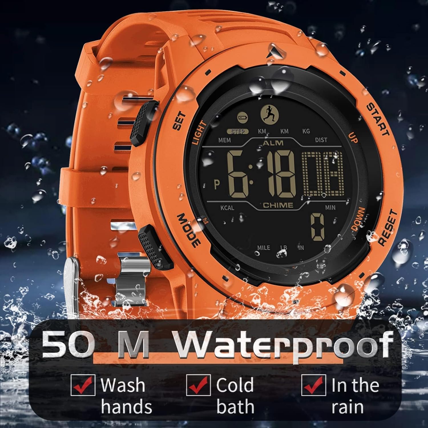 The findtime Men’s Digital Watch is a rugged, multifunctional sport watch designed for active lifestyles. Built for outdoor enthusiasts and fitness-focused individuals, it combines practical tracking tools with durable construction. This digital watch goes beyond basic timekeeping by integrating essential activity monitoring features, including a step counter and calorie tracker, all housed in a compact, wearable design. With its military-inspired aesthetic and reliable performance, it’s ideal for runners, hikers, gym-goers, and anyone who values function without sacrificing style. Whether you’re training for a race, tracking daily movement, or simply staying on schedule, this watch delivers consistent utility in a variety of environments—from the trail to the treadmill to everyday wear.