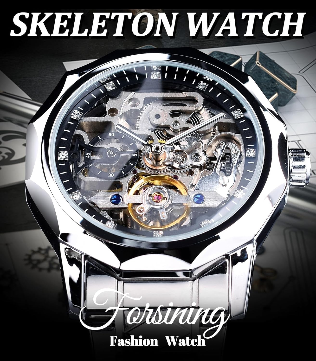 - Diamond-Cut 12-Sided Bezel: Precision-milled from high-grade stainless steel, the bezel features sharp, angular edges that refract light dynamically. Its twelve-sided profile gives the watch a distinctive presence, setting it apart from standard round or square cases.