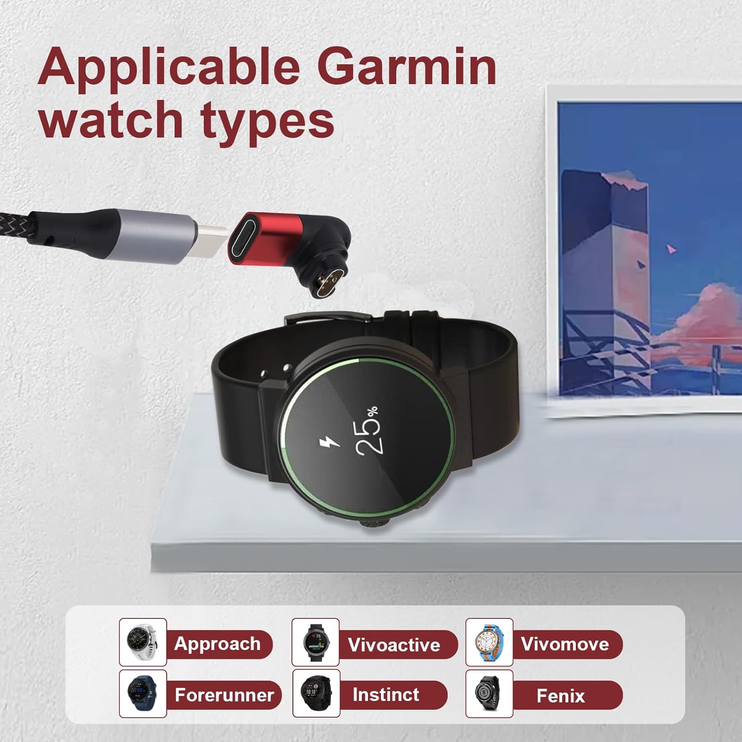 Usage Instructions: Simply pair it with a USB-C charging cable to charge your Garmin watch, eliminating the hassle of carrying an extra Garmin charging cable—ideal for travel or business trips.
