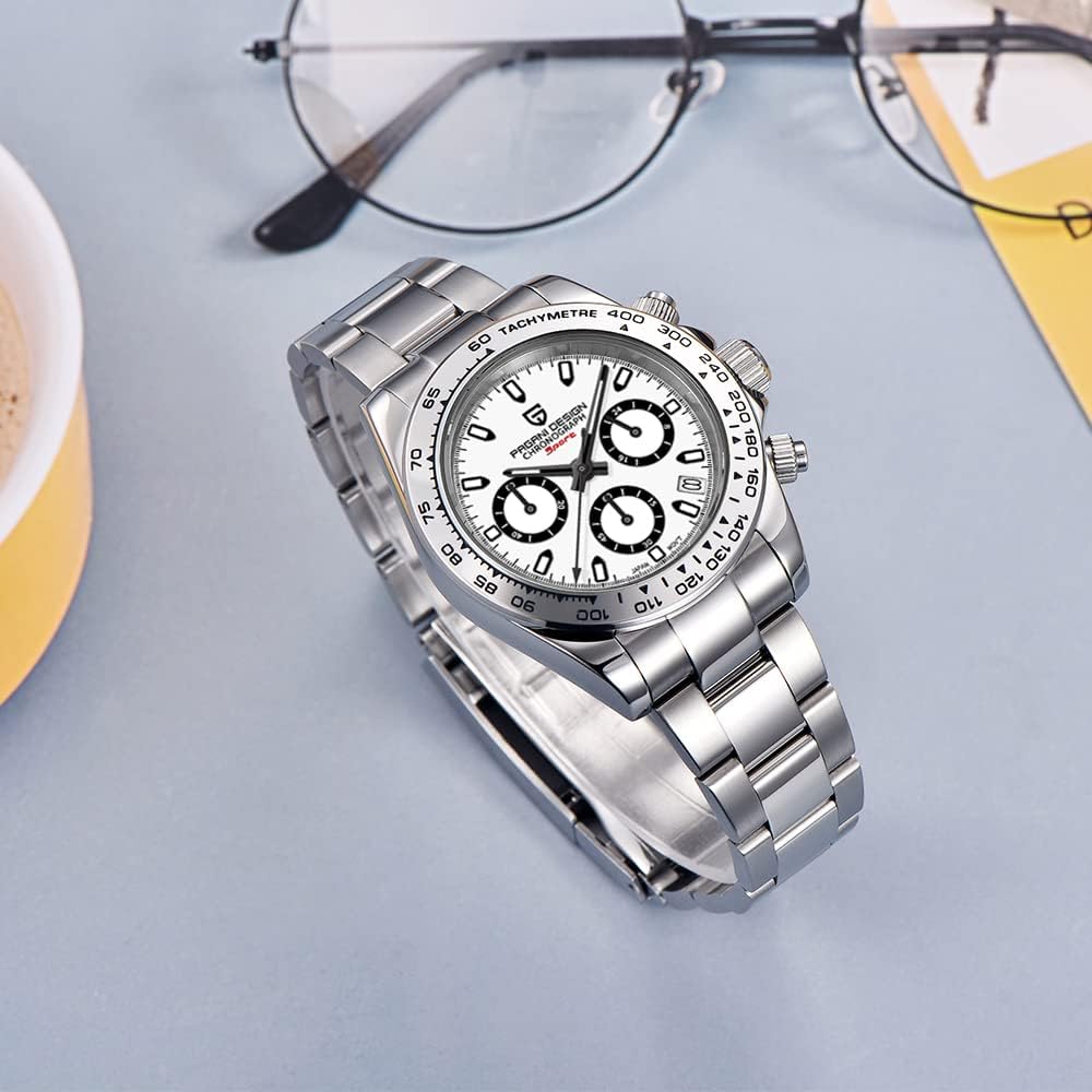 This watch turned out to be better than I thought it would be. IT IS NOT a Daytona, but its look and sensation scratches the itch for me. I doubt I’ll ever pay for a real Rolex, but for under a hundred dollars I have something that will do quite nicely for me. I have had it on my wrist for a week and it is accurate to the second! I know it’s a quartz watch, but I have other quartz watches not nearly as close.The dial is clear and simplistic, the chronograph is great, and the bracelet is fine. After adjusting it, it fits very comfortably.I am a romantic and love all my automatic watches with all the mysticism of the movement running inside, but for a “pick up and run with it watch,” this Pagani is more than satisfying. This is the kind of watch that will look great with a nice alligator band to kick it up a notch. This watch will find a lot of wrist time in the next year, for sure.
