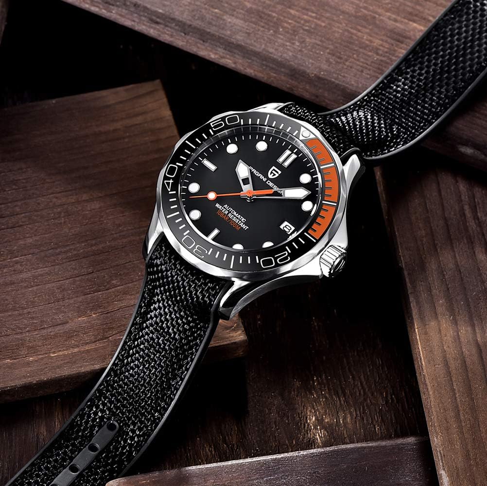 The HaiQin Pagani Design Men’s Automatic Diver’s Watch (Model PD1667-TY) is a meticulously engineered timepiece that blends mechanical precision with enduring style. Designed for the modern man who values both function and form, this watch features a Japanese automatic movement that powers itself through the natural motion of the wearer’s wrist—eliminating the need for battery changes while delivering consistent, reliable timekeeping. Encased in durable stainless steel and protected by artificial sapphire crystal glass, it stands up to daily wear with resilience and clarity. The 42mm dial and 14mm case thickness create a substantial yet balanced profile, making it a confident choice for everyday use. Whether you’re navigating a busy workday or exploring the outdoors, this watch offers a seamless blend of business sophistication and sport-ready durability.