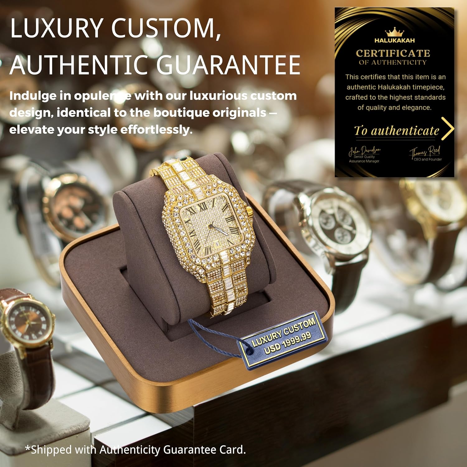 The Halukakah Watch for Men is a bold statement of luxury and craftsmanship, designed for those who appreciate high-end aesthetics without the extravagant price tag. Since 1990, Halukakah has redefined accessible luxury as the world’s first family jewelry brand, offering pieces that transition seamlessly from everyday wear to special occasions. This men’s watch combines opulent design with reliable functionality, featuring a fully iced-out moissanite diamond setting and premium plating options. Built for confidence at any age, it’s ideal for men who want to elevate their style with a timepiece that reflects both sophistication and durability. Whether worn on a night out or as a standout accessory in daily life, this watch delivers red-carpet presence with practical wearability.