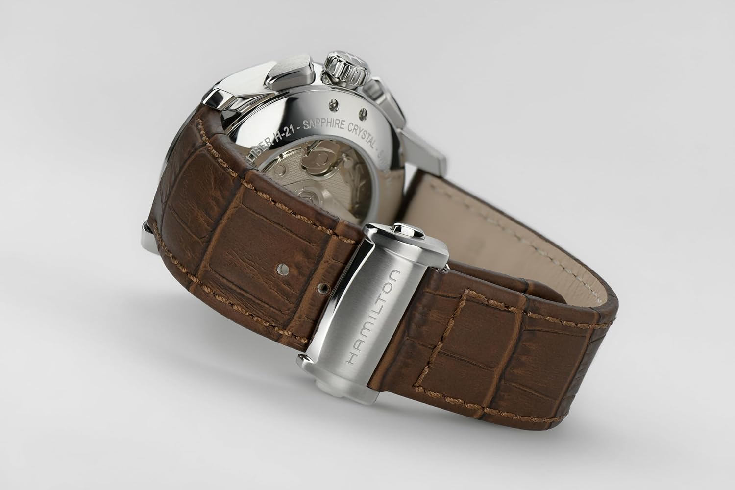 - 42mm Stainless Steel Case: The case strikes a balance between presence and comfort, offering a substantial yet wearable size that fits well on most wrist sizes. Its refined contours and clean lines reflect Hamilton’s attention to detail, making it appropriate for both formal occasions and everyday use.