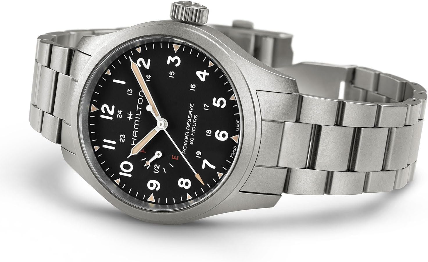 This watch is ideal for men who appreciate mechanical watches with historical significance and modern functionality. Its field watch design makes it a strong choice for outdoor enthusiasts, travelers, or anyone who values a no-nonsense, dependable timepiece. The visual power reserve indicator adds practical value for users who may not wind their watch daily, offering peace of mind during multi-day wear. The 100-meter water resistance allows for use during swimming and water-based activities, while the sapphire crystal ensures the dial remains clear despite exposure to dust, dirt, and minor impacts. The stainless steel construction provides resistance to corrosion and daily wear, making it suitable for both casual and semi-formal settings. Whether worn during a weekend adventure or as part of a daily professional look, the Khaki Field Mechanical Power Reserve delivers consistent performance and timeless style.