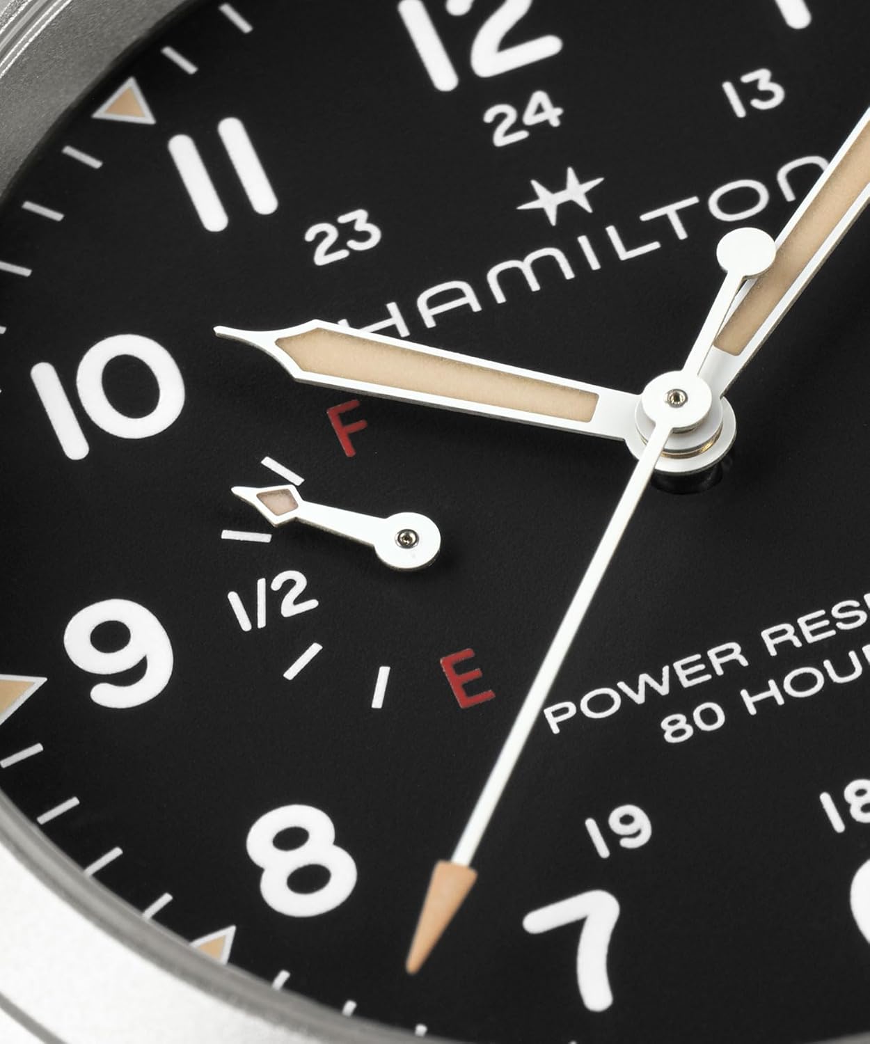 The Hamilton Khaki Field Mechanical Power Reserve 40mm is a Swiss-made men’s watch that blends military-inspired heritage with modern mechanical innovation. Designed for those who value precision, durability, and functional elegance, this timepiece delivers reliable performance in a rugged yet refined package. At its core is a manual-winding H-23 movement developed exclusively for Hamilton by ETA, offering an impressive 80-hour power reserve—visually tracked directly on the dial. The watch features a 40mm stainless steel case, a sleek black dial, and a matching stainless steel bracelet, making it suitable for both everyday wear and demanding environments. With 100 meters of water resistance and a sapphire crystal, it’s built to withstand daily challenges while maintaining a classic field watch aesthetic.