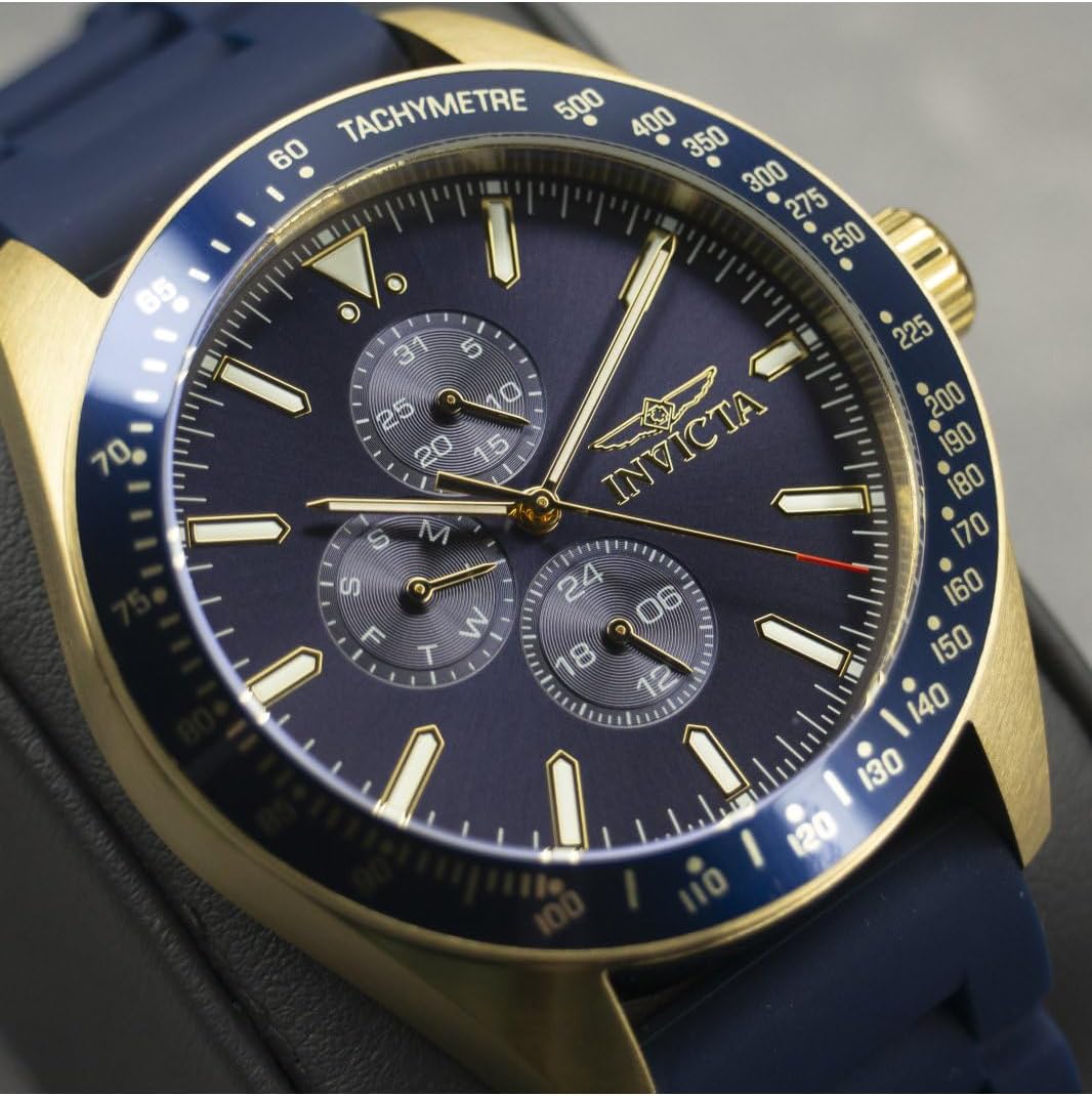 Invicta has long celebrated the spirit of flight, and the Aviator collection honors that legacy with designs rooted in aeronautical history. Each timepiece in the series is crafted to evoke the precision and confidence of cockpit instrumentation, making it more than just a watch—it’s a tribute to the art of navigation and exploration. With its striking blue colorway and sporty silicone band, this model strikes a balance between boldness and wearability, making it suitable for everyday use across a range of settings.