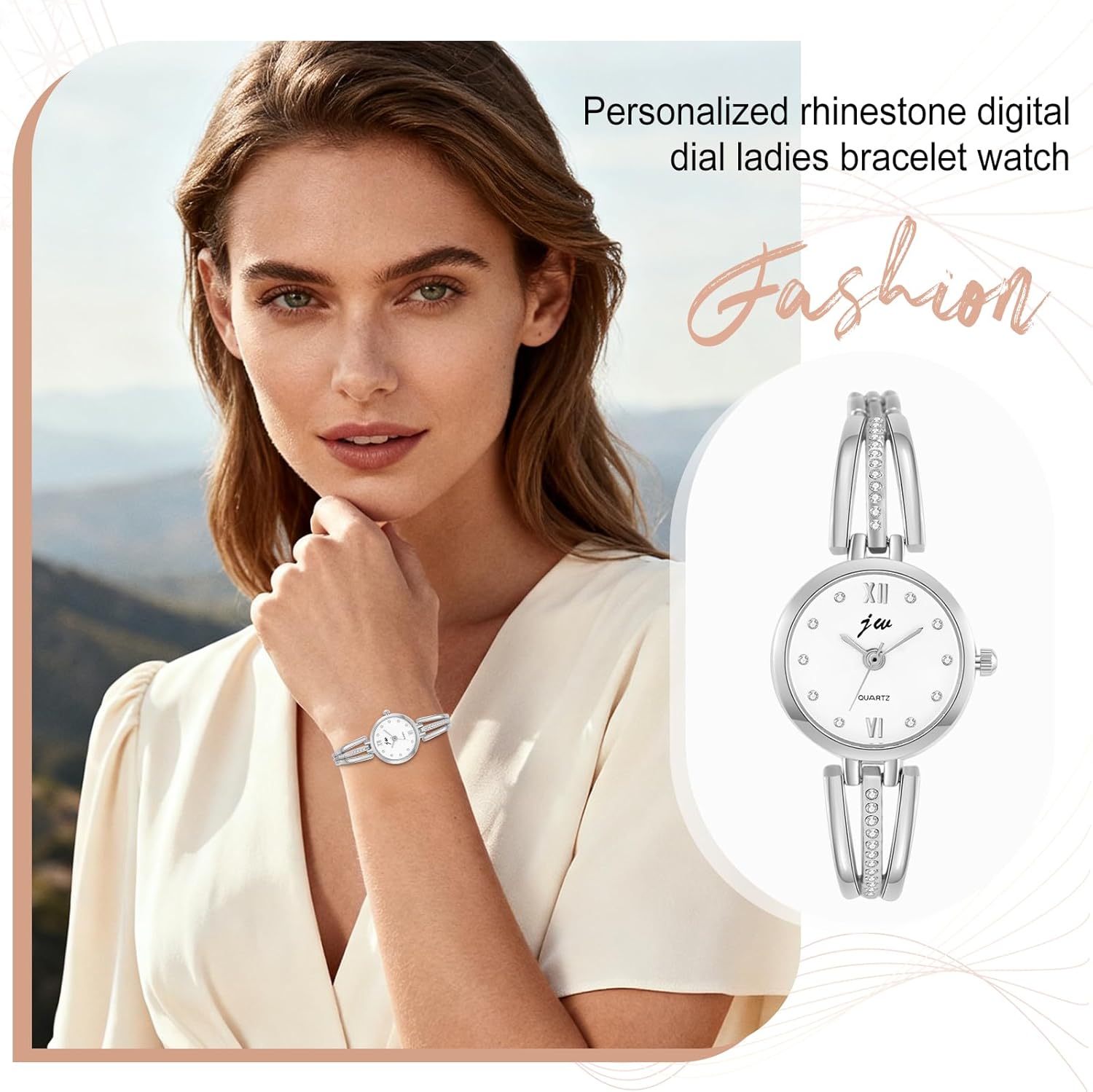 This bracelet watch is ideal for women who want a single accessory that transitions seamlessly across different parts of their day. In professional environments, it adds a touch of sophistication to blazers, blouses, or tailored dresses without appearing overly flashy. During social gatherings or evening events, the rhinestone detailing catches ambient light, enhancing the wearer’s presence with understated glamour. The dual-tone finish makes it easy to coordinate with existing jewelry collections, whether she wears a silver necklace, gold earrings, or a mix of both. As a gift, particularly for Valentine’s Day, it conveys thoughtfulness and elegance—offering something beautiful that also serves a daily purpose. Its lightweight build ensures it won’t weigh down the wrist, making it comfortable for extended wear during work, travel, or leisure. The bangle design also means no adjustments are needed; it slips on easily and stays in place throughout the day.