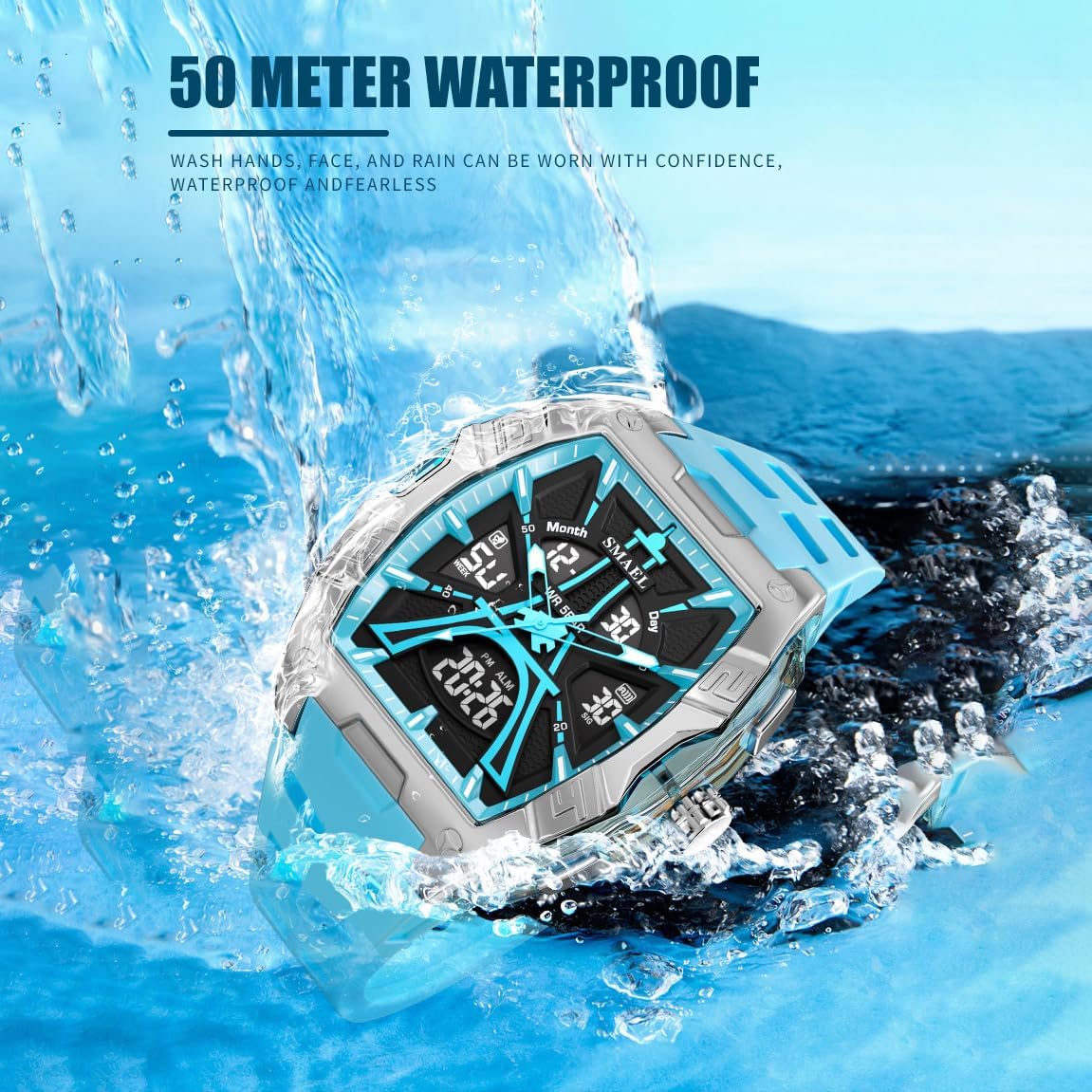 The KXAITO Sports Watch for Men blends timeless design with practical features, making it a reliable companion for men who stay active and value everyday functionality. Whether you’re working out, traveling, or managing a busy schedule, this watch delivers clear timekeeping through its dual analog and digital display. The combination of classic watch aesthetics and modern digital readouts ensures you can quickly check the time, date, and other essential functions at a glance. Built to handle daily wear and tear, it’s designed for real-life use—from morning jogs to late-night shifts. With a 50M waterproof rating, it stands up to rain, handwashing, and even swimming, so you won’t need to take it off during routine water exposure. Available in six color options and multiple case shapes, it’s easy to find a version that fits your personal style or makes a thoughtful gift for someone special.