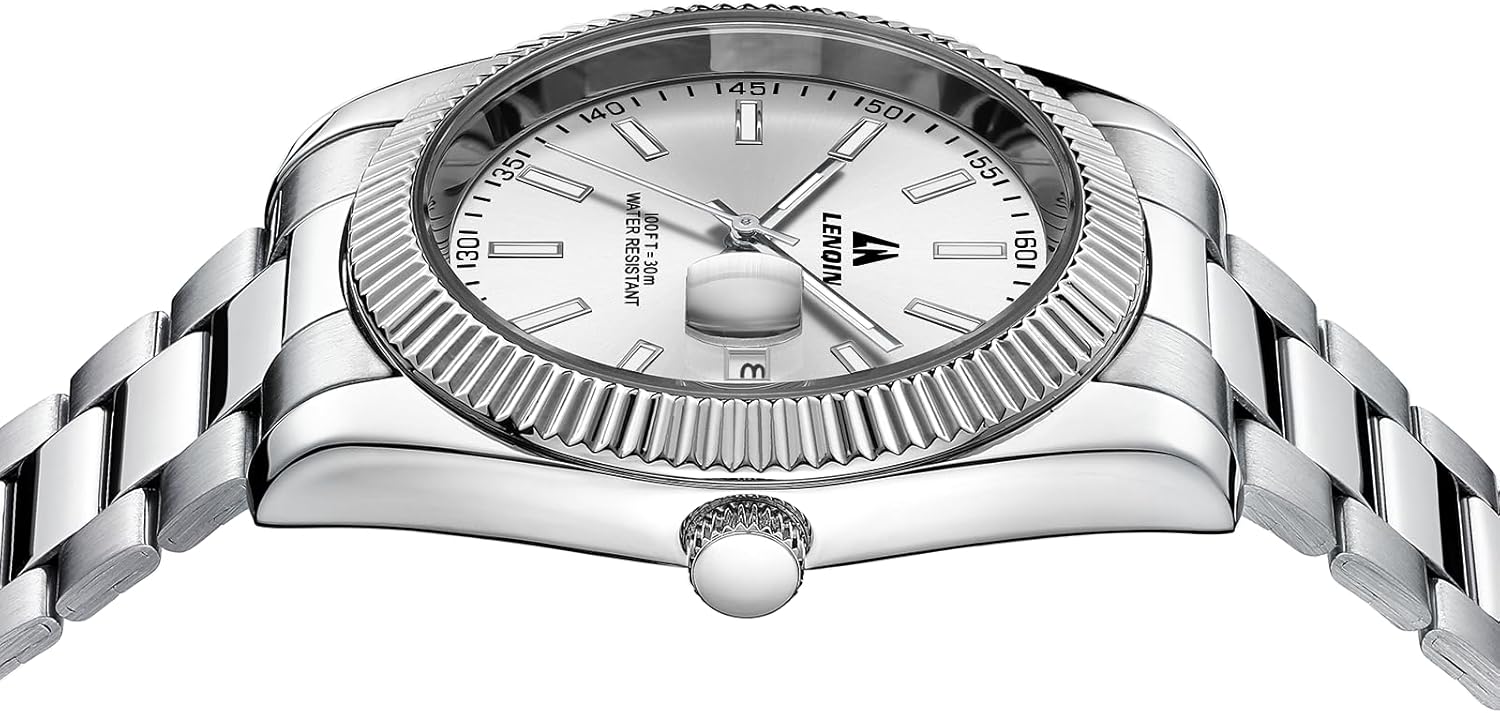 The LN LENQIN Men’s Watch combines modern design with everyday functionality, making it a reliable choice for men who appreciate both style and practicality. Crafted with a stainless steel case and matching bracelet, this analog quartz watch delivers a polished, professional appearance suitable for business environments, formal occasions, or casual daily wear. Its 40mm case diameter offers a balanced, contemporary fit—large enough to make a statement without overwhelming the wrist. Powered by precise Japanese quartz movement, the watch ensures consistent accuracy and minimal maintenance. With a luminous dial, date display, and 30-meter water resistance, it supports a wide range of daily activities while maintaining a sleek, durable build. Whether you’re heading to the office, meeting friends, or traveling, this timepiece provides dependable performance and timeless appeal.