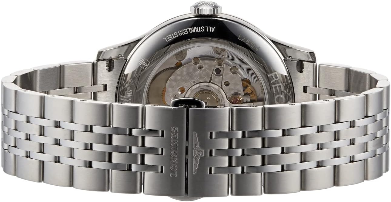 Longines Record Automatic COSC Stainless Steel Blue Dial Date Mens Watch Model# L2.820.4.96.6 / L28204966 features a 38.5 mm stainless steel case that holds a gorgeous blue sunray dial and a polished fixed bezel. It has silver-tone dauphine style hands and indices, white painted Arabic numerals, and a date window at the 3 o’clock position. A stainless steel bracelet with a triple safety folding clasp and push-piece opening mechanism completes the elegant and classic look. This watch also features a see-through caseback showcasing the caliber L888.4, a COSC-certified Swiss automatic movement beating at 25,200 vibrations per hour, and is water-resistant up to 30 meters/100 feet. Like all of our watches, this Longines Record Automatic COSC Stainless Steel Blue Dial Date Mens Watch is brand new and comes in its original packaging. Since 1832, this Switzerland-based company has crafted fine watches with a dedication to elegance and performance. Starting in 1867, Longines recorded the serial number of every watch they�ve created and are now able to authenticate and track the history of their timepieces. Longines has such a rich history that a museum in Saint-Imier, Switzerland, exists today that showcases their story in the watchmaking world.