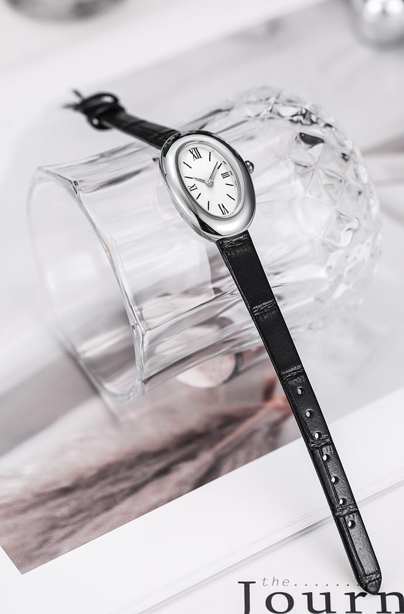 - Elegant Oval Dial Design – The 24mm oval face presents a graceful, feminine profile that enhances the natural curve of the wrist. Its clean, uncluttered layout features easy-to-read hour markers and hands, offering clear visibility without sacrificing style. The compact size is especially flattering on smaller wrists, providing a balanced, proportional appearance that doesn’t dominate the arm.