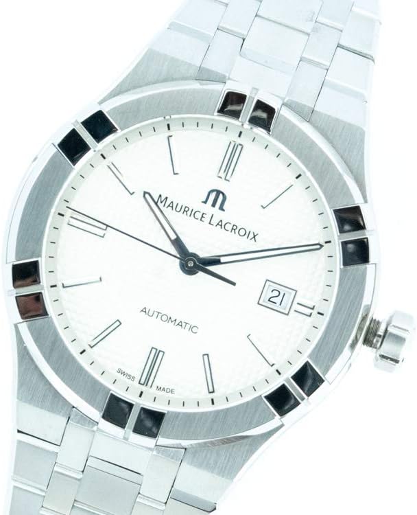 Maurice lacroix mens watch. Silver stainless-steel case and silver Stainless Steel strap. Silver dial. Automatic movement. Double locking fold over clasp closure. Water resistance of 200 meters.