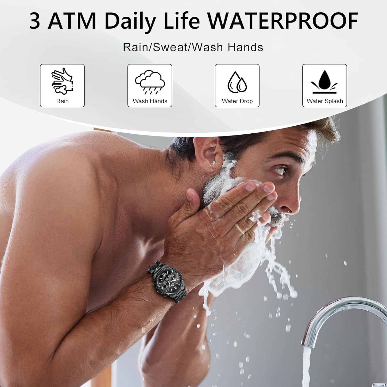 - Water Resistance: 30M (suitable for everyday splashes, not swimming or diving)