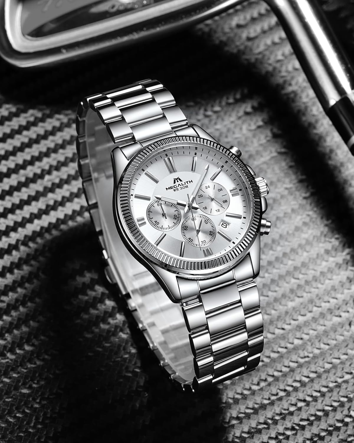 MEGALITH Silver Men’s Wrist Watches: Waterproof Chronograph
