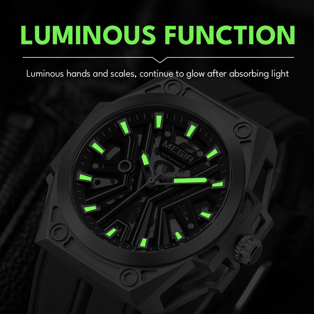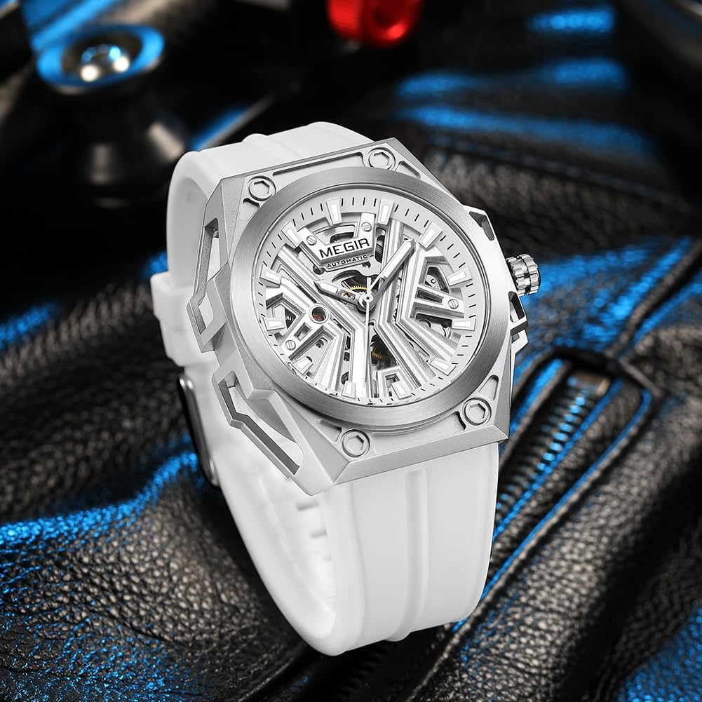 The MEGIR Automatic Men’s Wrist Watch combines precision engineering with rugged style, designed for men who value both form and function. Built around a self-winding automatic movement, this watch eliminates the need for batteries while delivering consistent timekeeping performance. It features a durable 316L stainless steel case that resists corrosion and maintains its finish over time, making it suitable for daily wear. The luminous dial ensures readability in low-light conditions, while the 5ATM water resistance rating allows it to withstand splashes, rain, and brief submersion. With its sleek silicone band offering comfort and flexibility, this timepiece strikes a balance between sporty durability and everyday sophistication.