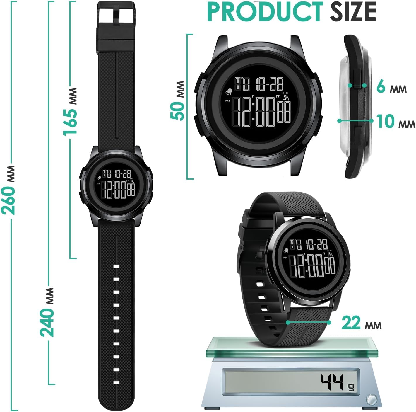 - Large LED Digital Display: The bold, high-contrast screen makes reading the time, date, and function modes effortless—even in bright sunlight or low-light settings. The large face enhances visibility, reducing the need to squint or adjust your viewing angle.