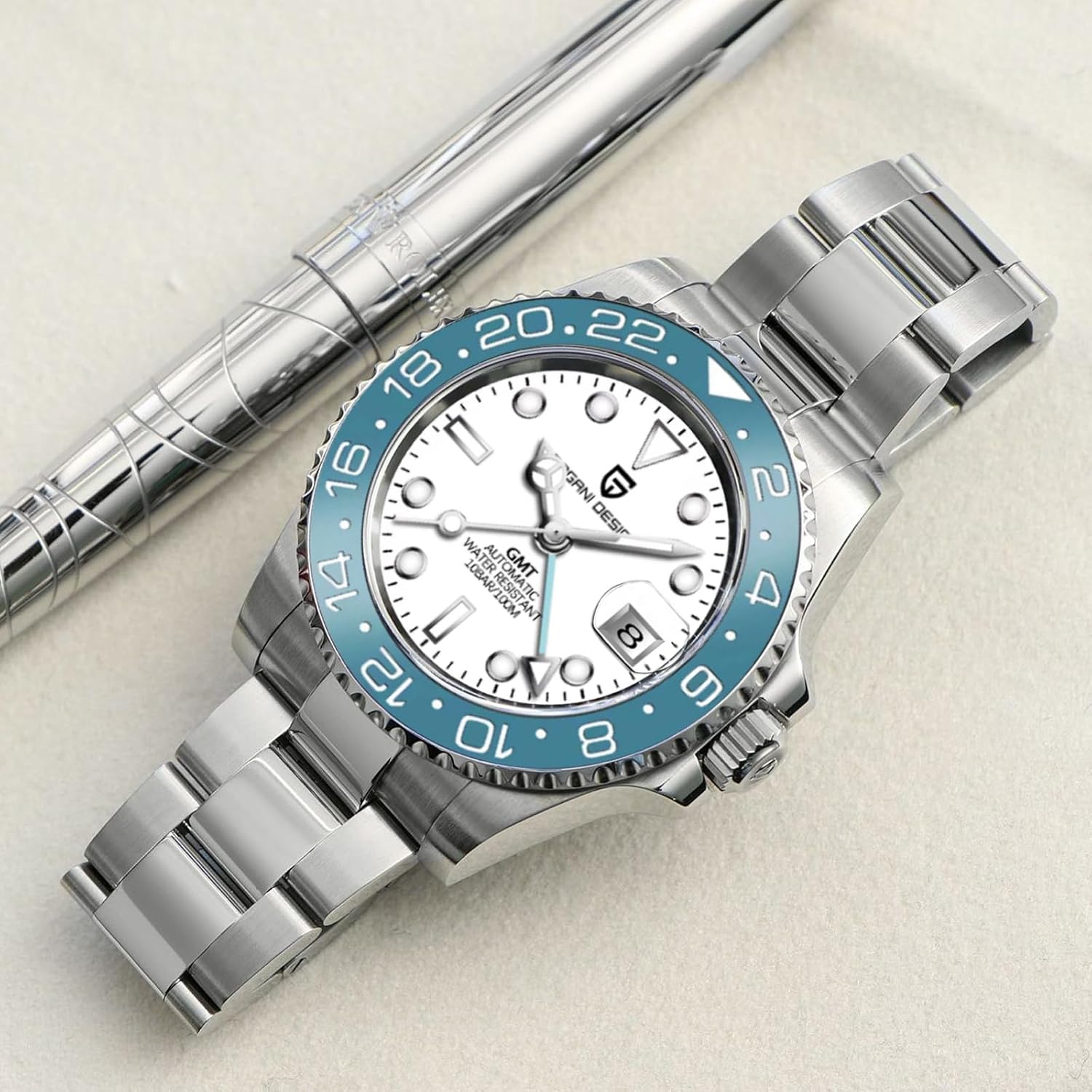 The Pagani Design PD-1662 is built for real-world use. Its GMT function makes it a practical companion for business travelers or remote workers coordinating with teams across continents. The 100-meter water resistance allows worry-free use during swimming, snorkeling, or daily activities like handwashing and rain exposure. The sapphire crystal and ceramic bezel ensure the watch maintains its appearance despite daily wear, while the automatic movement appeals to those who appreciate mechanical craftsmanship. The luminous dial enhances usability during nighttime or in dimly lit environments, such as flights or evening events. With its secure bracelet and adjustable clasp, it fits comfortably across a range of wrist sizes and under sleeves.