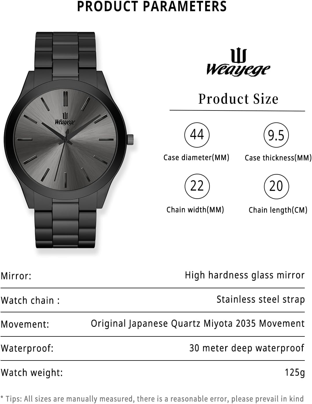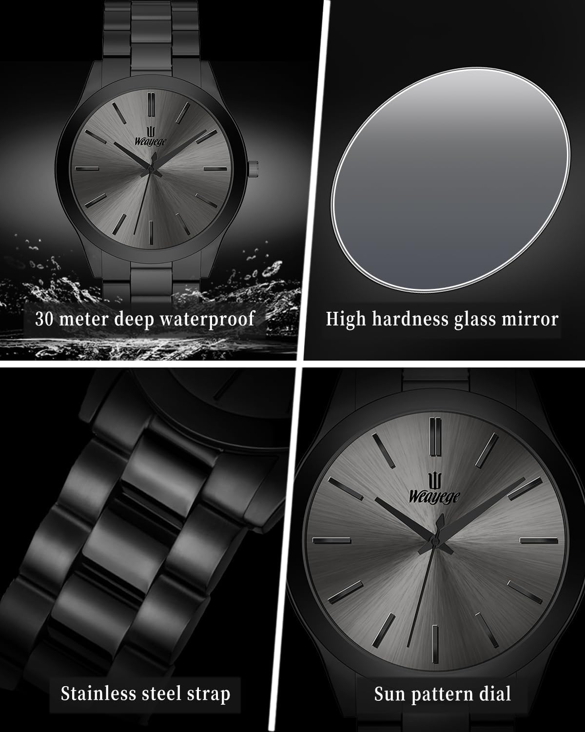 While the watch is waterproof, it is not intended for use during swimming, showering, or any activity involving full submersion in water. To preserve its finish and functionality, avoid exposure to harsh chemicals, extreme temperatures, or abrasive surfaces. The product includes a manufacturer warranty; customers should refer to the provided link or contact the seller directly for specific warranty terms and conditions. As this item was first made available in December 2024, it represents a recent addition to the Weayege product line, reflecting current design trends and manufacturing standards.