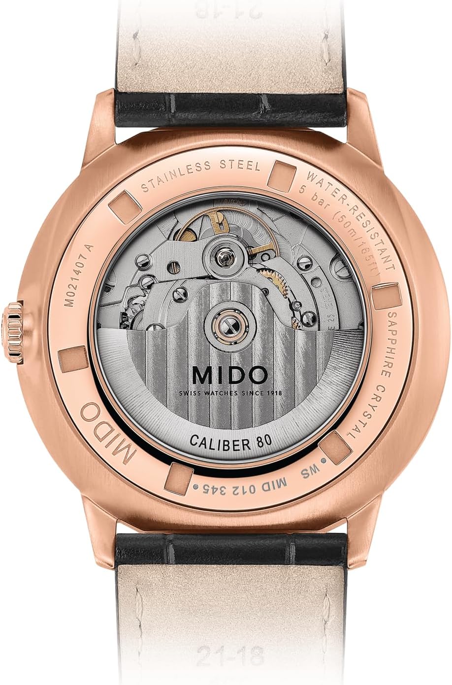 - High-Quality Materials & Finishes: MIDO applies meticulous attention to detail, using premium materials and refined surface treatments throughout. The case and dial are finished to resist wear while maintaining a polished, sophisticated appearance over time.
