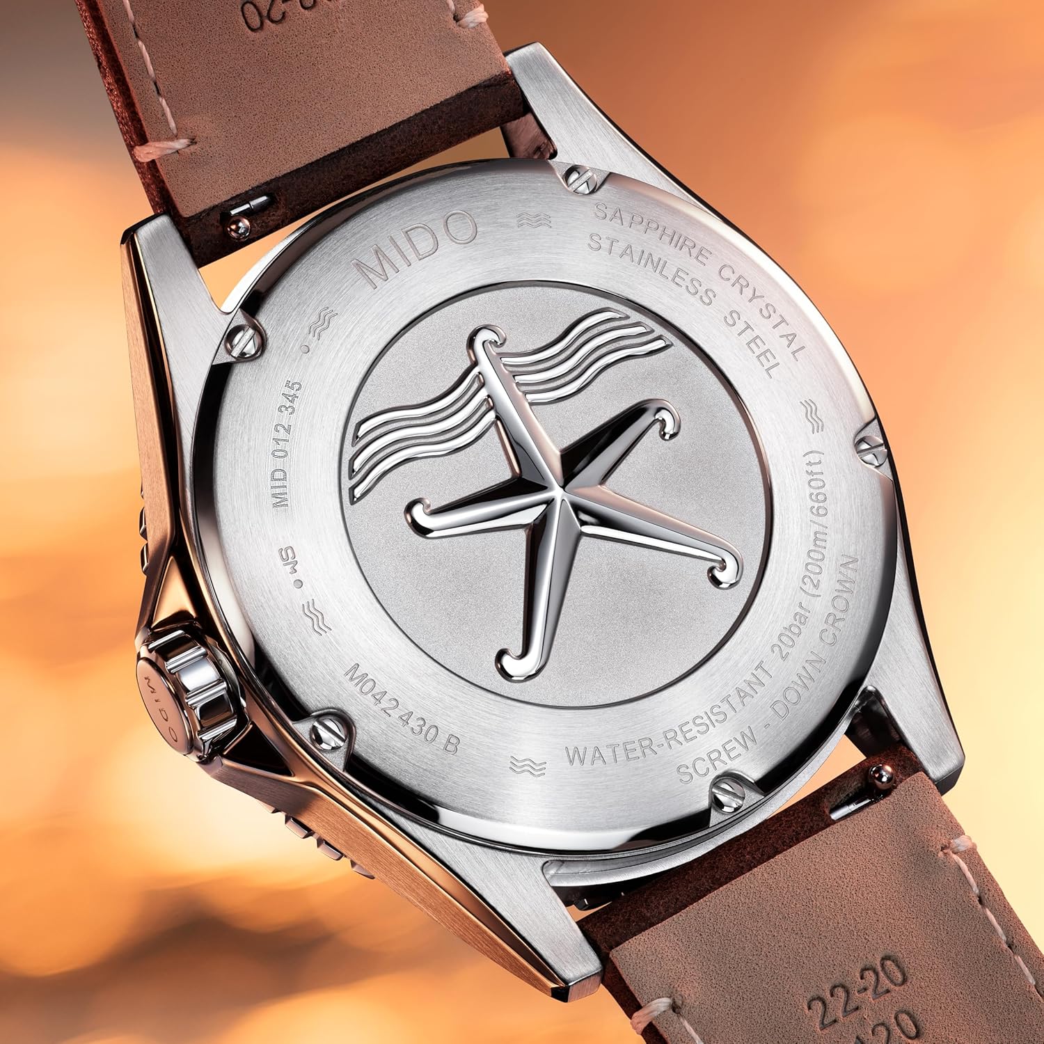 The MIDO Ocean Star 200C is ideal for divers and water sports enthusiasts who require a reliable, ISO-compliant timepiece capable of withstanding underwater pressure. Its 20-bar water resistance and secure screw-down crown make it suitable for recreational diving, snorkeling, and swimming. The ceramic bezel resists wear from saltwater and UV exposure, maintaining its appearance over time. Beyond aquatic use, the watch’s bold 42.5mm case and wave-patterned dial give it a distinctive presence on land, making it a versatile accessory for casual and semi-formal settings. The inclusion of day and date functions enhances everyday utility, while the Swiss automatic movement ensures precision without the need for battery replacements. With its long 80-hour power reserve, the watch remains accurate even after several days of non-wear, ideal for travelers or those who rotate multiple timepieces.