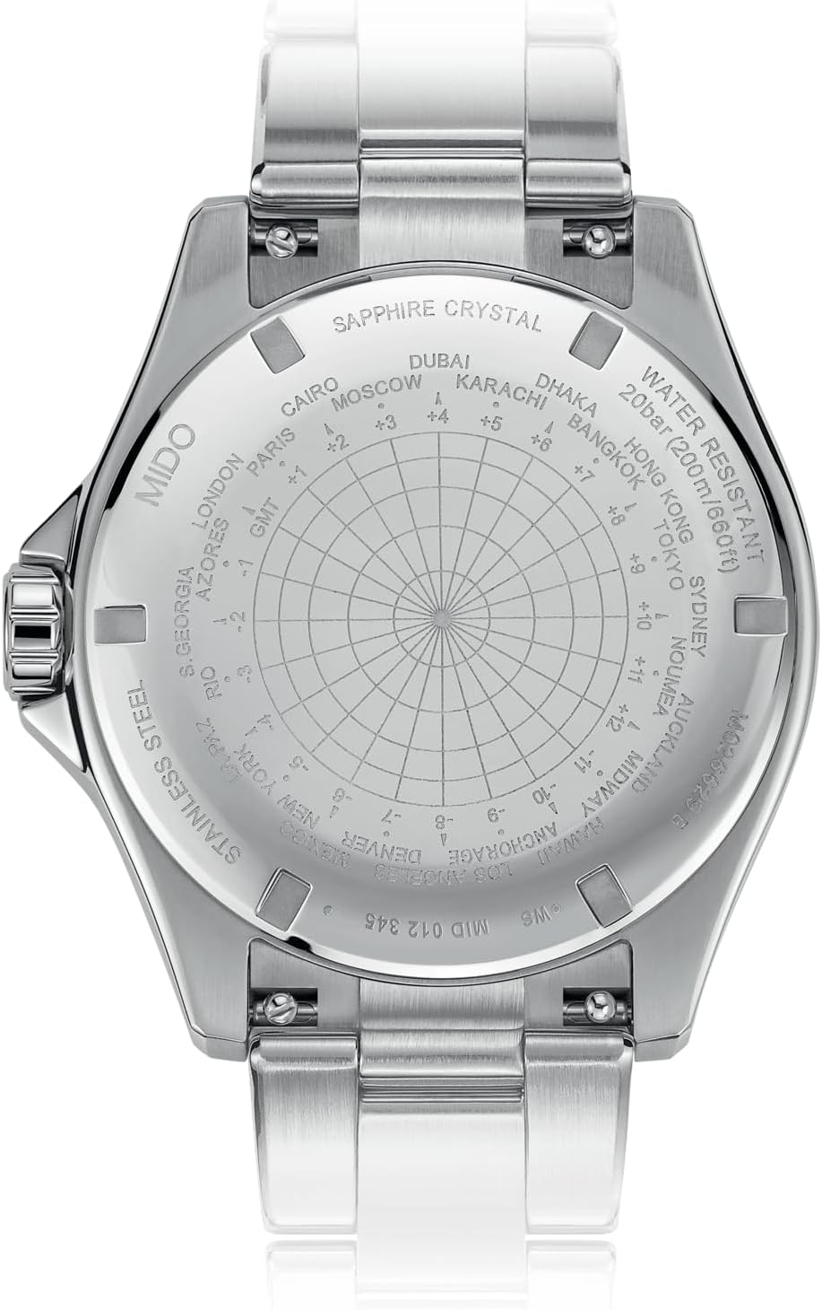 MIDO is enriching its Ocean Star diving watches collection with a version equipped with the highly practical GMT function. It clearly displays the time in two different time zones: home time and local time. On the back of the sporty Swiss watch – fitted with the Caliber 80 automatic movement , which offers a power reserve of up to 80 hours – MIDO has engraved the time-zone indications. The extremely easy-to-use GMT function offers twice as much freedom for those who are either by the ocean or on an adrenalin-fuelled adventure.